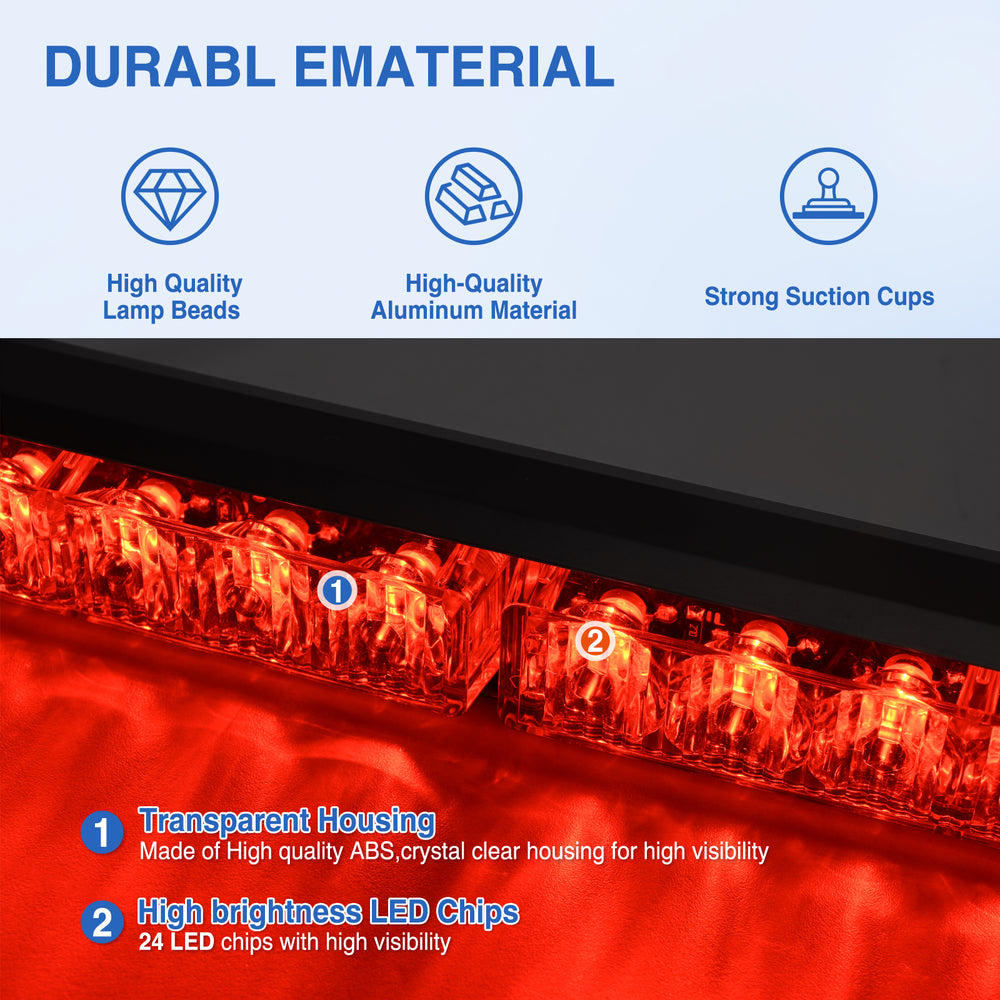 24LED Emergency Strobe Traffic Advisor Light Bar 2 in 1 Red Dash Warning Safety Flashing Lights Front/Rear Windshield Construction Lights for Trucks Cars Plow Police Firefighter Vehicles