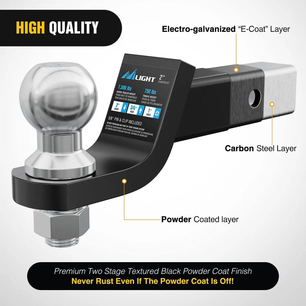 - Ball & Pin Kit Included: The loaded ball mount comes with a pin and clip for mounting to the appropriate sized receiver tube