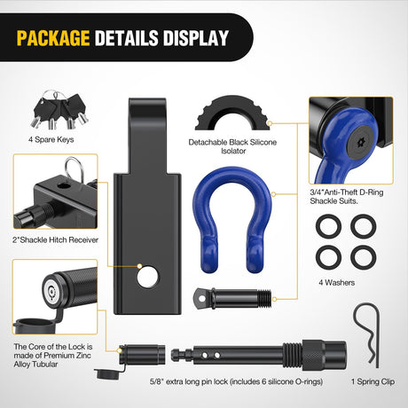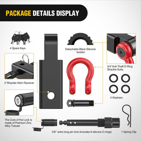 $37.99Unit price /Unavailable2 Inch Shackle Hitch Receiver 3/4 Inch D Ring Kit White Black