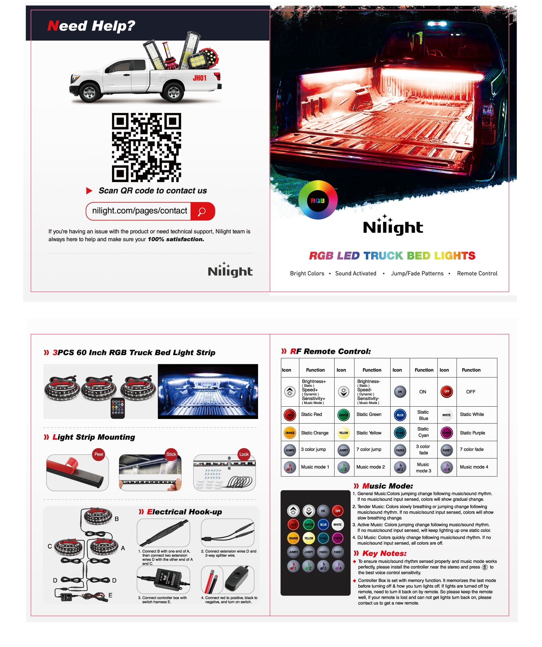 - Easy To Install: The RGB truck bed light strip comes with self-adhesive tape and extra cable ties, screws and fasteners, just clean the mounting location with alcohol and dry, peel, and stick the light bar on any surface you want