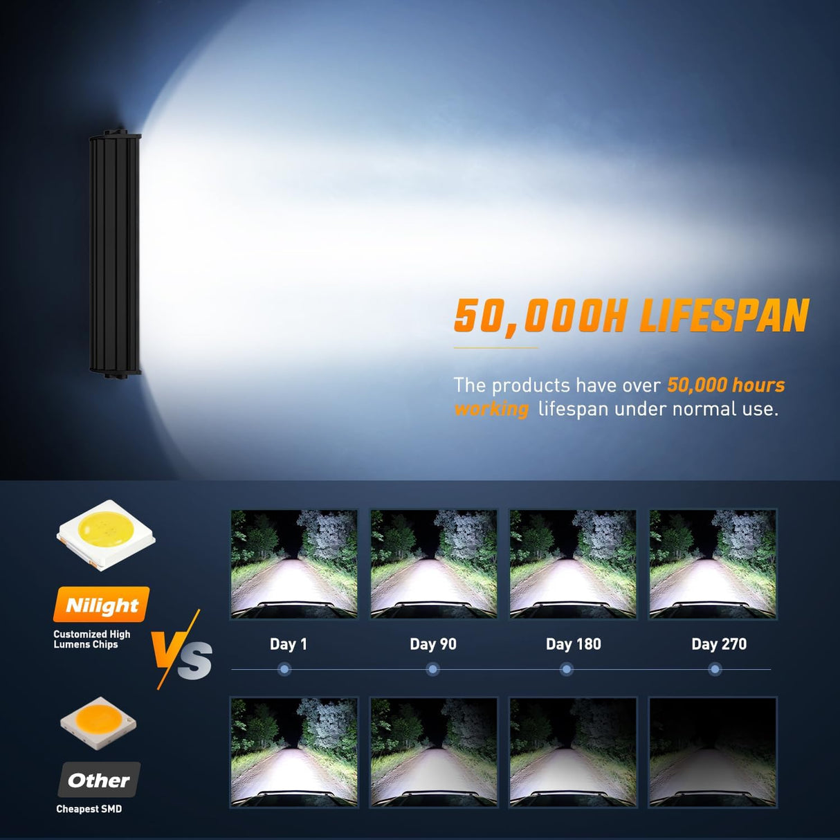 - Super Bright: Combo beam with triple row and nest reflector cup design in the middle for extreme light efficiency