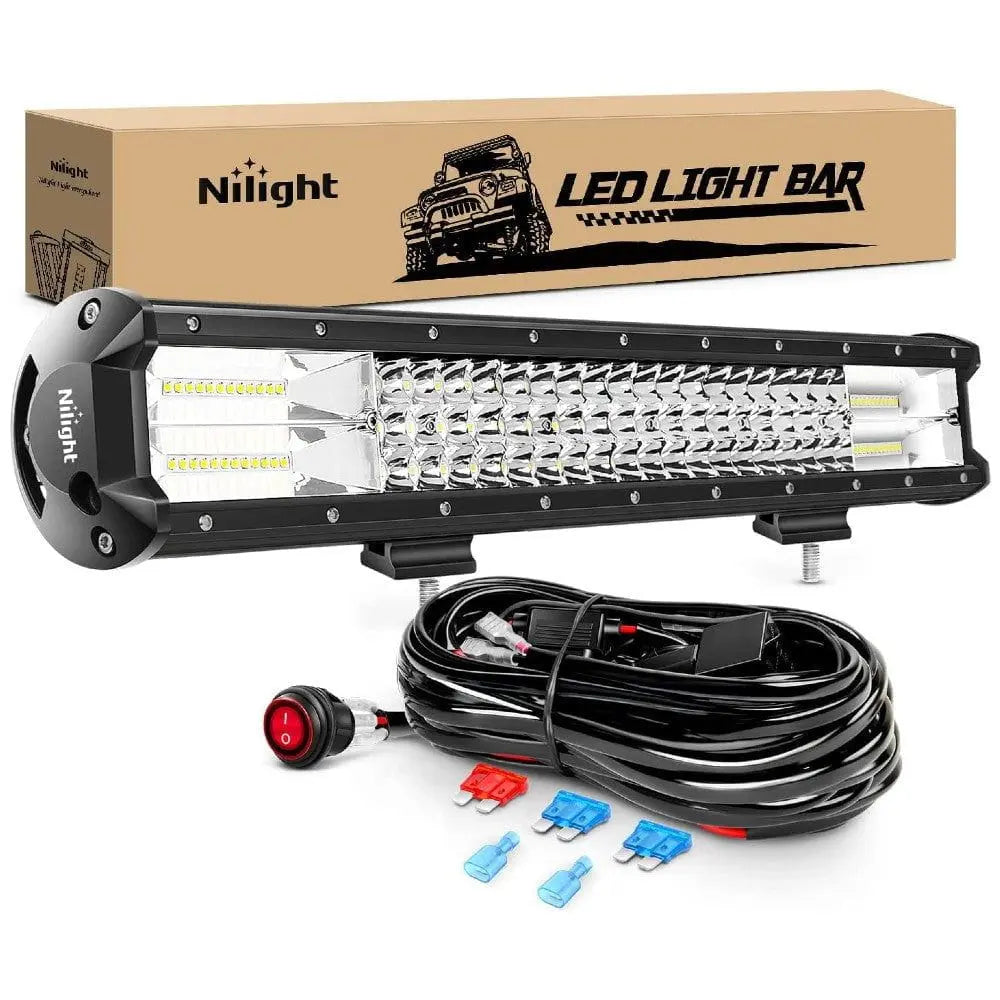 20 Inch 288W 28800LM Triple Row Spot Flood LED Light Bar Kit | 14AWG Wire 3Pin Switch