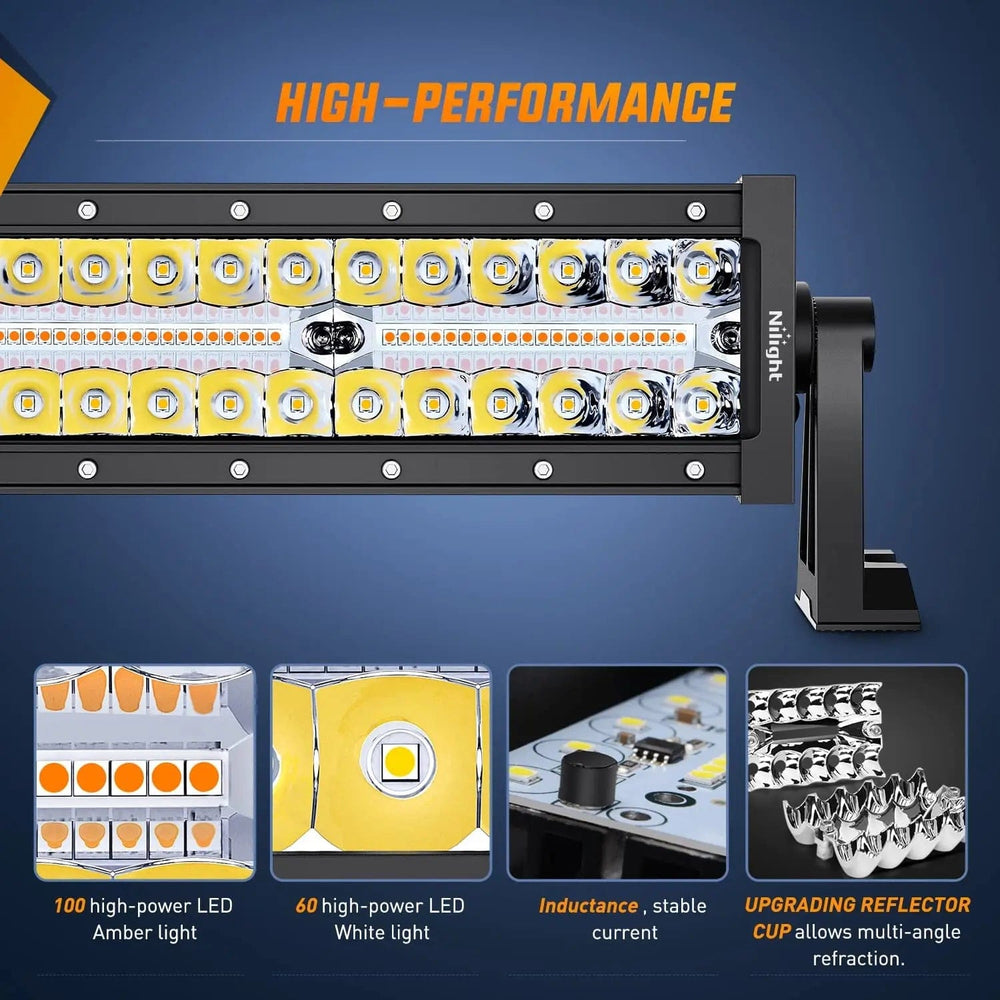 22 Inch 480W Amber White Strobe Triple Row Spot Flood Led Light Bar | 16AWG DT Wire