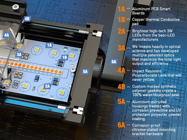 The waterproof rubber pad and silicone sealing strip as the second protection the light better handle different kinds of weather.