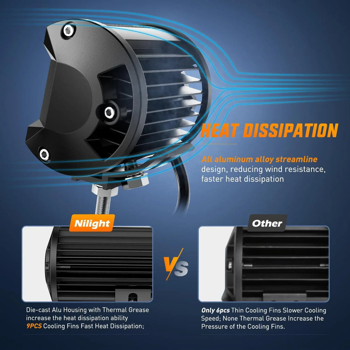- Waterproof Rate: IP67 rate, seamless protective housing with waterproof glue, great performance of waterproof, dustproof and quakeproof. 2 Years Warranty Honored by Nilight