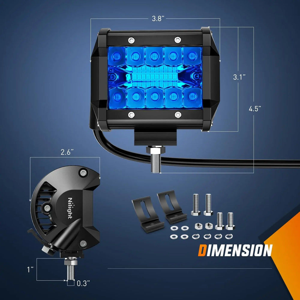 - Blue Super Bright combo beam: Adopted 20pcs 3w led chips, appropriate combination of spot beam and flood beam for wide spread and further distance illumination, allowing you to see the front and rear cars clearly in bad weather such as night or heavy fog, light up your night fishing, night ride or any other night activities