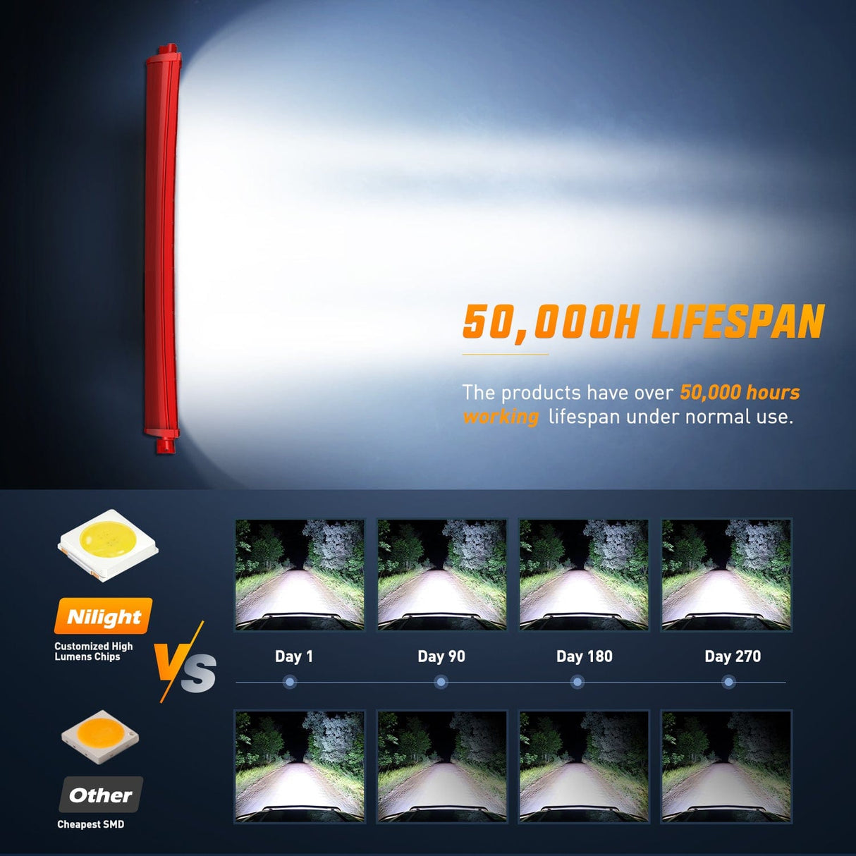 50 Inch Triple Row Red Shell Spot Flood Led Light Bar | 12AWG Wire 5Pin Switch