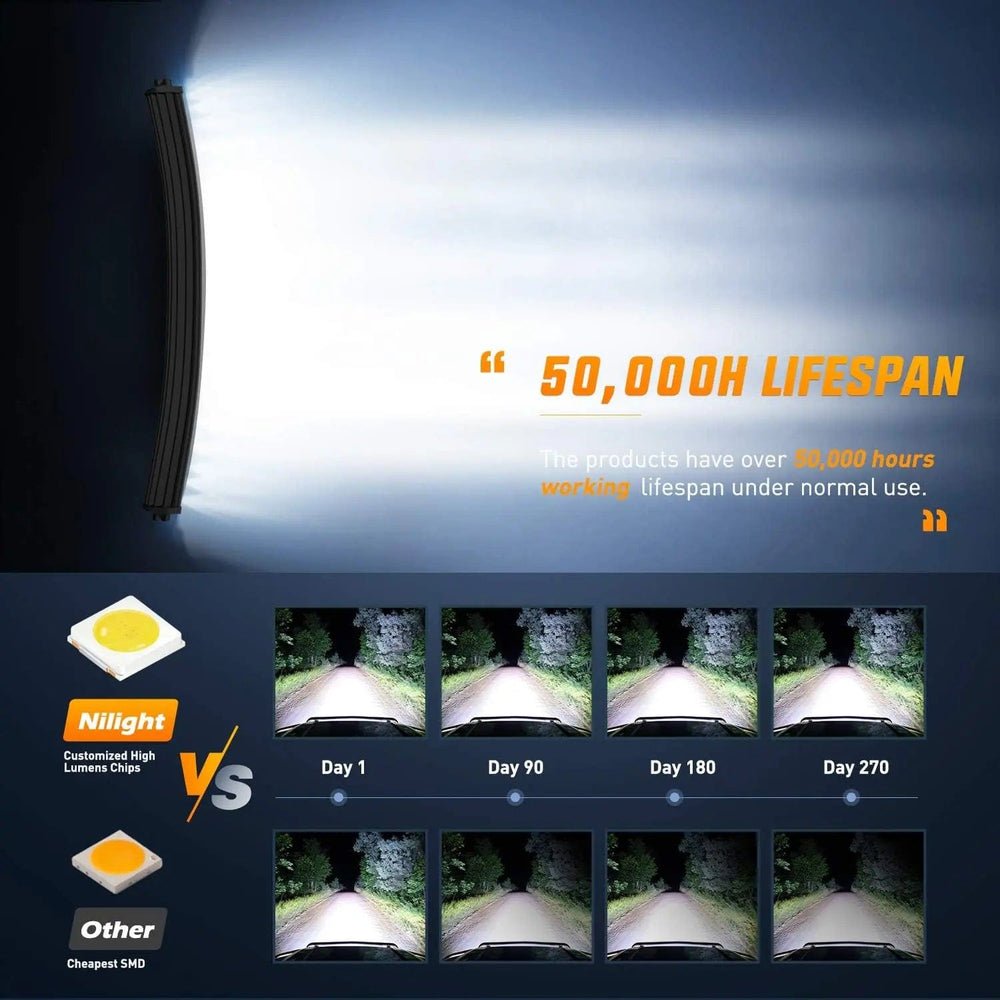 - Super Brightness: Combo beam with triple row and nest reflector cup design in the middle for extreme light efficiency