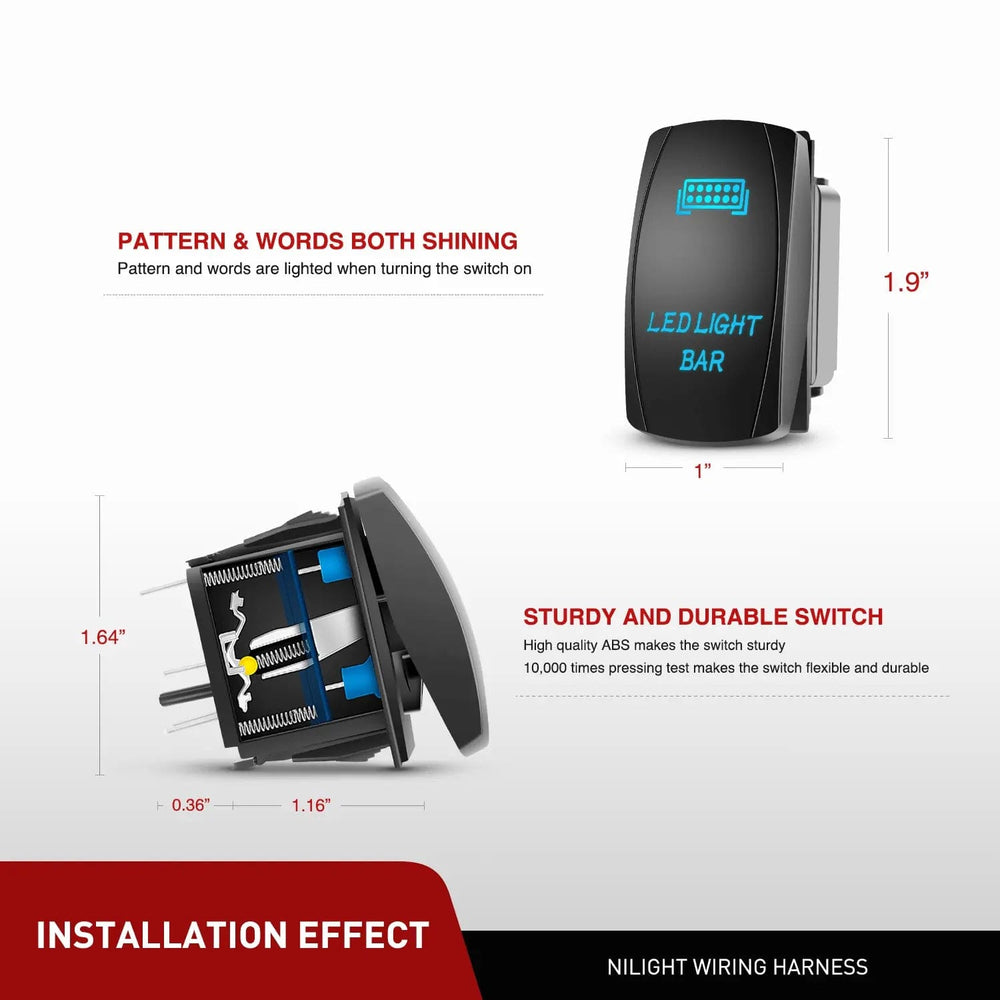 - Quality Wire: 12 gauge wire with inline blade fuses, rocker switch, relay all in one kit. Excellent electrical conductivity, outstanding bending performance, high temperature, and melting resistance. Long-lasting and always ready to use