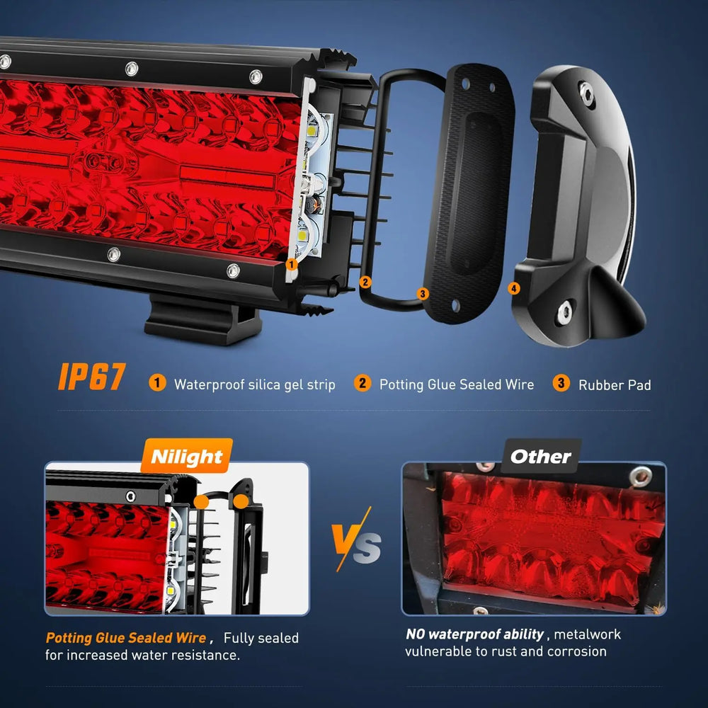 - Waterproof Rate: IP67 rate, seamless protective housing with waterproof glue, great performance of waterproof, dustproof and quakeproof. 2 Years Warranty Honored by Nilight