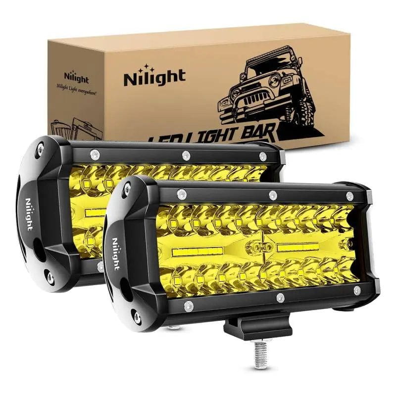 - Brightness: Powerful 120W LED light bar, high-quality Led chips, and a clear PC lens, this LED pod emits 6000k yellow light, effectively lighting up the dark road during the night;