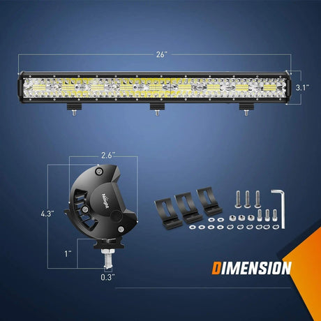 $74.99Unit price /Unavailable26 Inch 540W 50000LM Triple Row Spot Flood LED Light Bar | 14AWG Wire 5Pin Switch