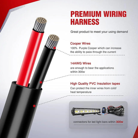 $49.99Unit price /Unavailable12 Inch 300W 30000LM Triple Row Spot/Flood Led Light Bar Kit | 16AWG Wire 3Pin Switch