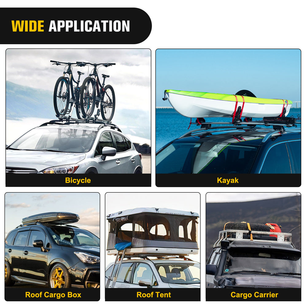 Our roof rack crossbar has a sturdy structure. This design is very solid and not easy to break, and can withstand heavier objects.