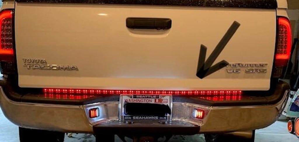 • Easy Installation: Just peel the adhesive tape and stick the strip on the tailgate, can also use the additional mounts and screws for extra security. And then plug and play the standard 4 flat pin connector, connect the red reverse light wire to any 12V positive wire. (Note: Test Left & Right turn signal lights first before you stick the strip light)