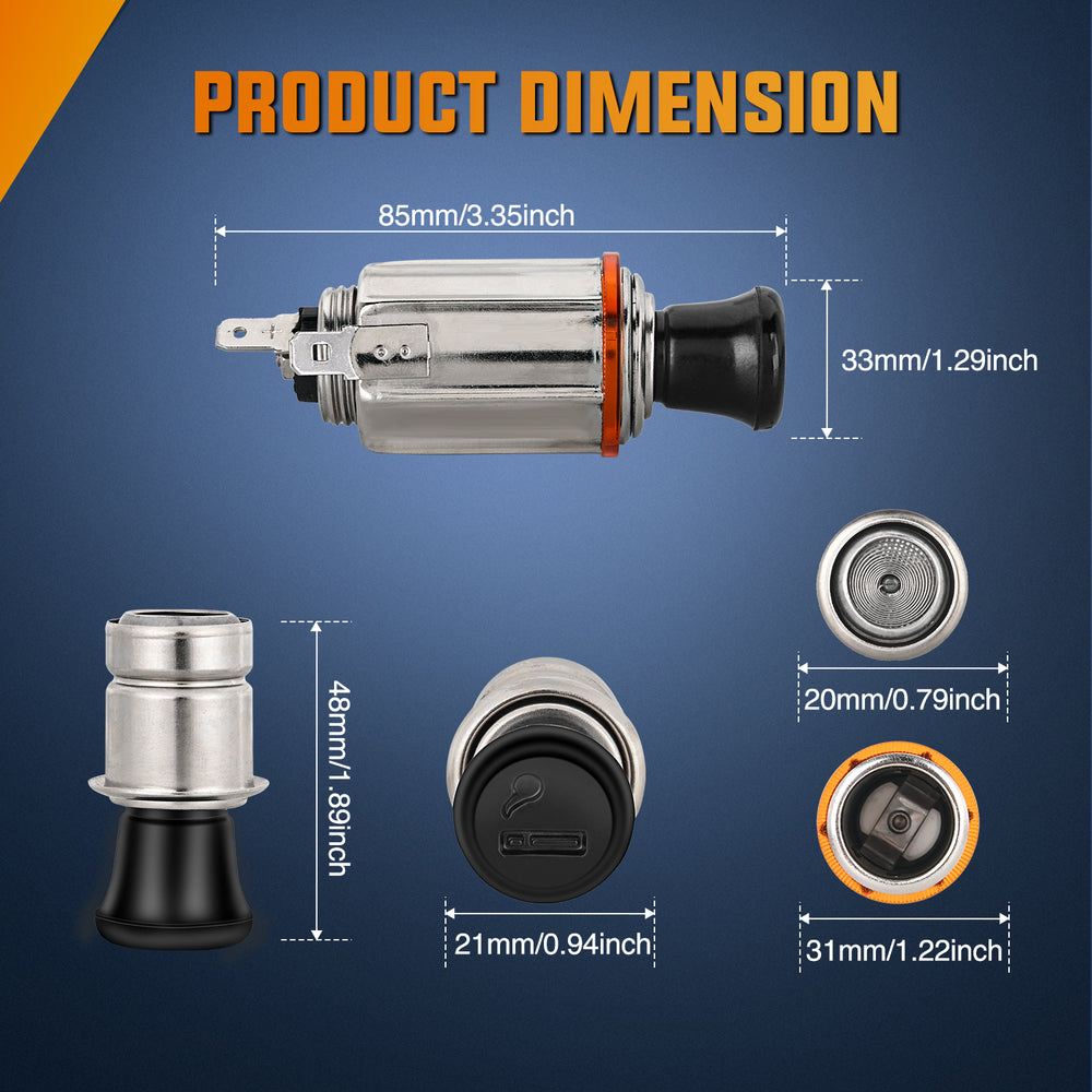 - Conventional Size: This cigarette plug is small and light design, fits for most of 12V cigarette lighter sockets, which is the standard configuration of most American/Japanese cars.