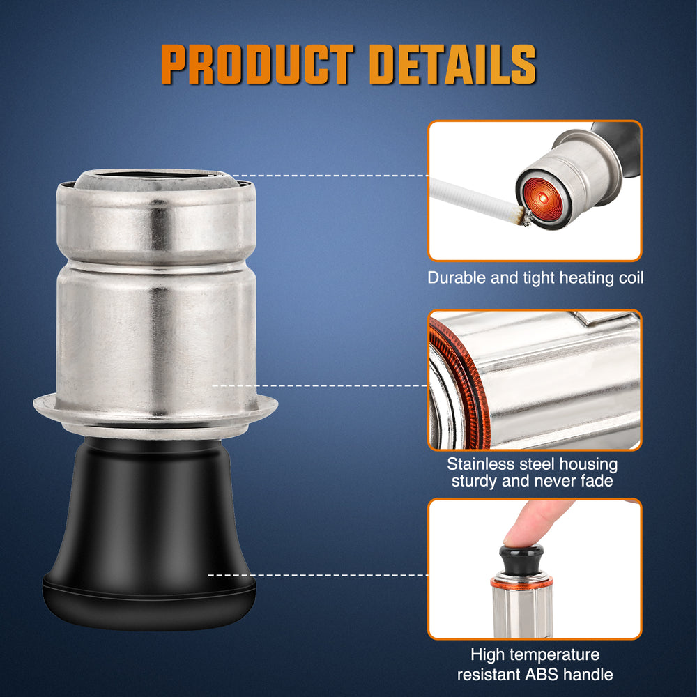 - High Quality Material: The cigarette lighter is construct with high-quality stainless steel housing, sturdy and never fade, having a long service life. High temperature resistant ABS handle makes it used conveniently. Also,durable and tight heating coil can ignite the cigarette easily.