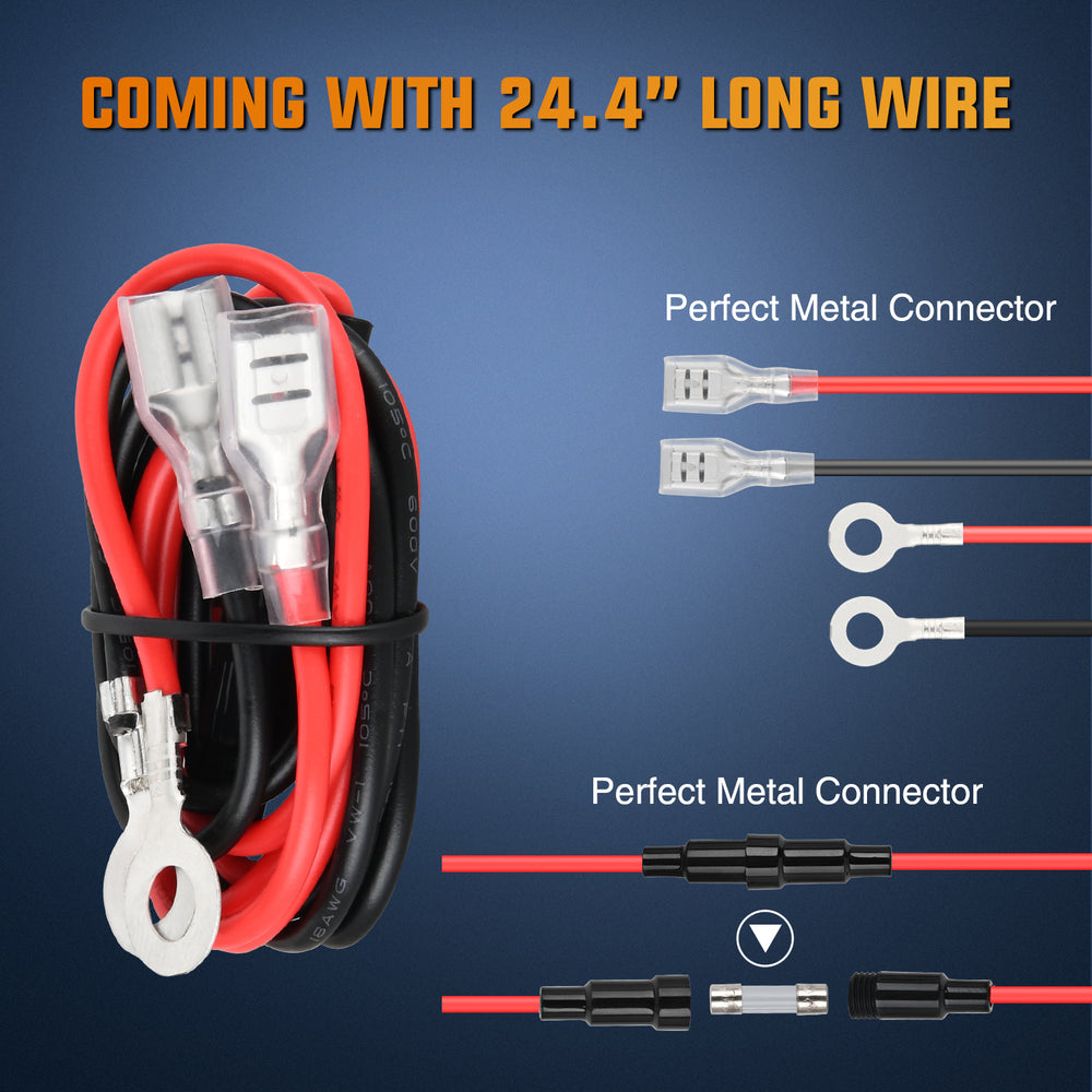 - Safety Protection: Coming with the 60cm long wiring harness, which is built-in 10A fuse, will prevent your devices from over-heat, over-current, over-voltage, over-load, and short-circuit.