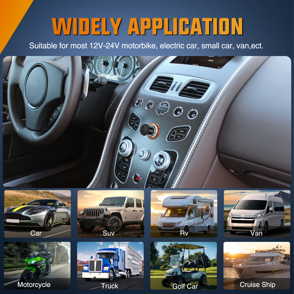 - Widely Application: This cigarette lighter is widely application to most 12V vehicles like cars, trucks, SUVs, scooters, tractors, boats, yachts, etc.