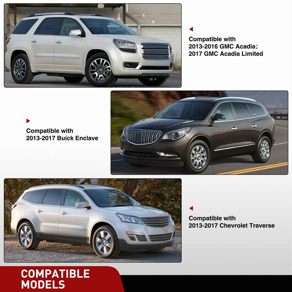 - Vehicle Specific: This vehicle-trailer wiring harness is designed for 2013-2017 Buick Enclave, 2013-2017 Chevrolet Traverse, 2013-2016 GMC Acadia, 2017 GMC Acadia Limited OEM-compatible connectors to plug into your vehicle¡¯s wiring harness, it locates behind the driver side rear bumper.