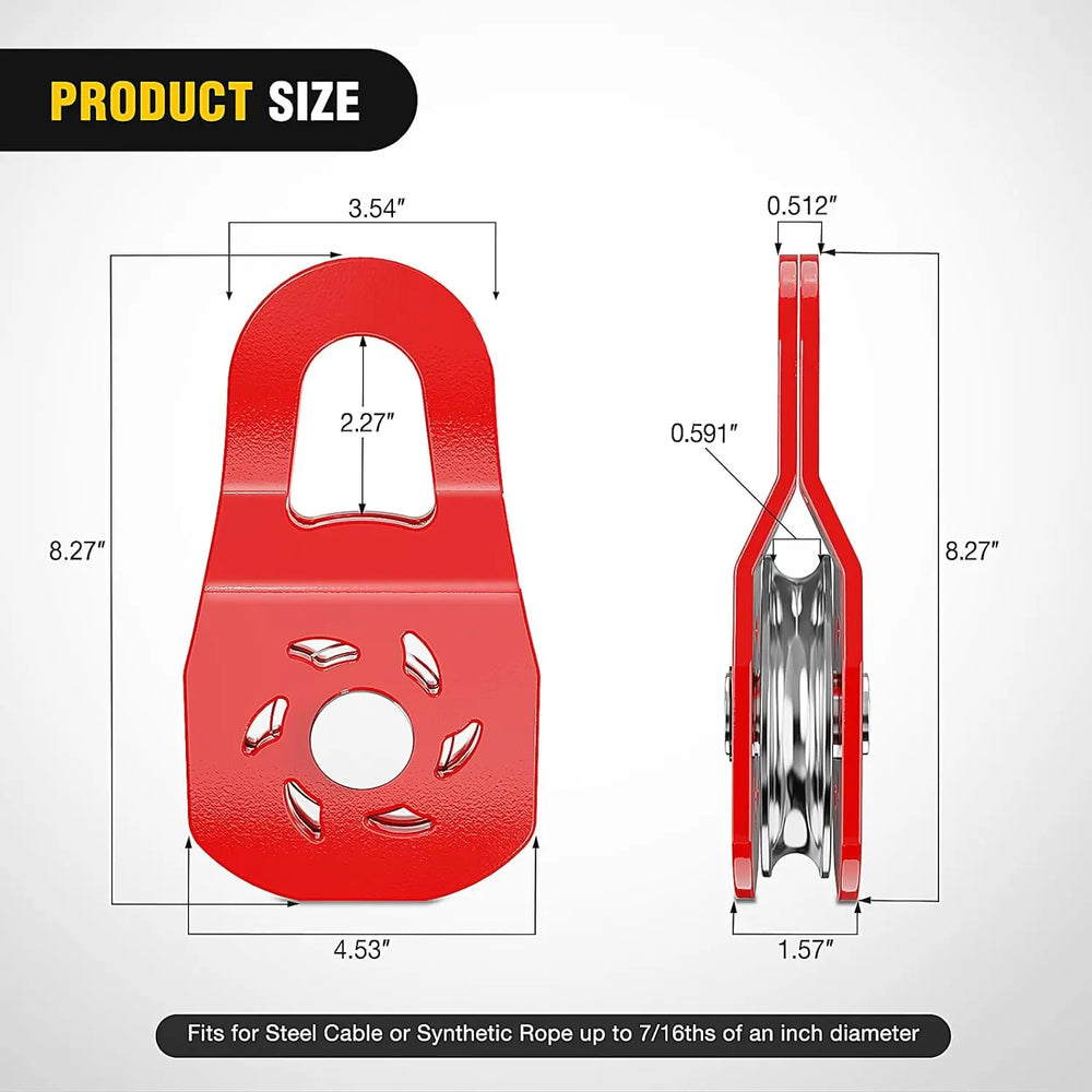 • Durable Material: The Winch Snatch Block is made in solid forged steel, the surface treatment adopts e-coat finish + powdered coat protection, which maximizes the durability of the Winch Snatch Block and prevents rust and corrosion.