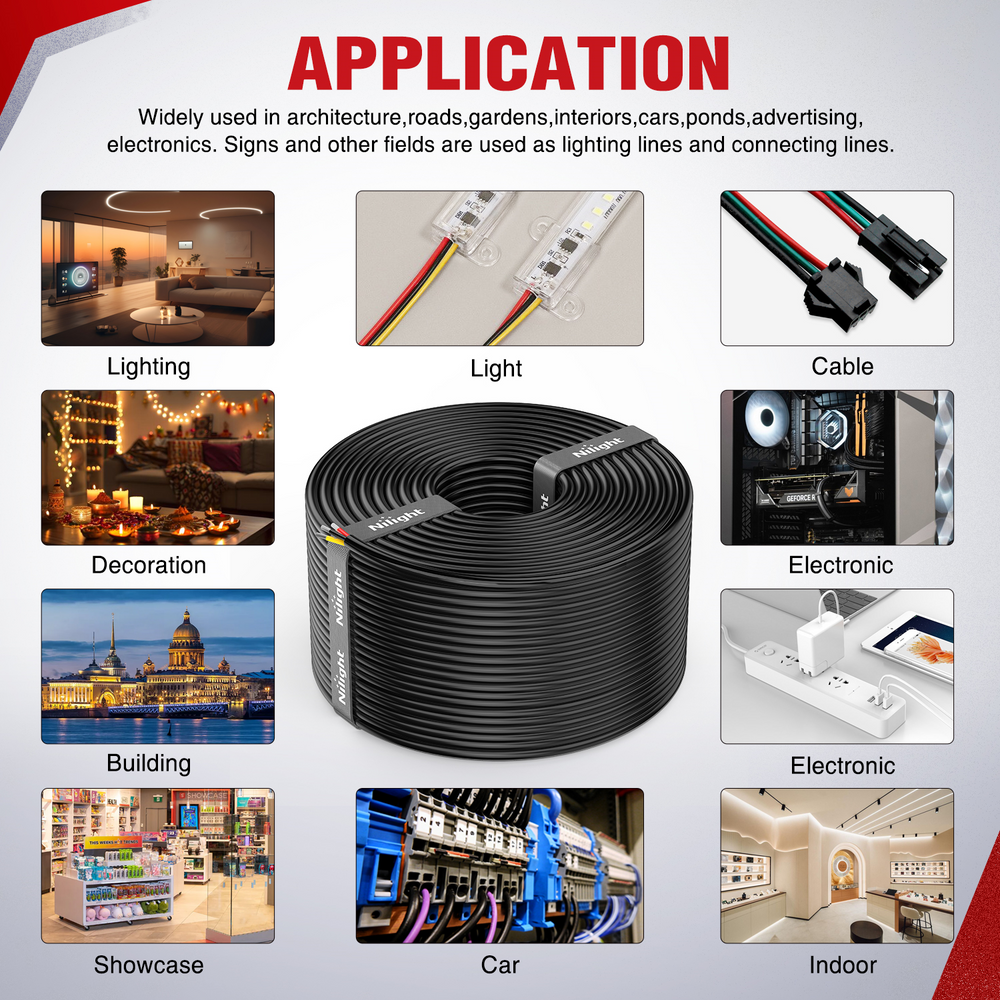 - Highly Conductive: Nilight electrical wire uses high-precision oxygen-free tinned copper. The outside diameter of the Jacket is 3.1 mm, and 26 strands of 0.24 mm tinned copper wire are inside each circuit, has lower resistance and higher conductivity.