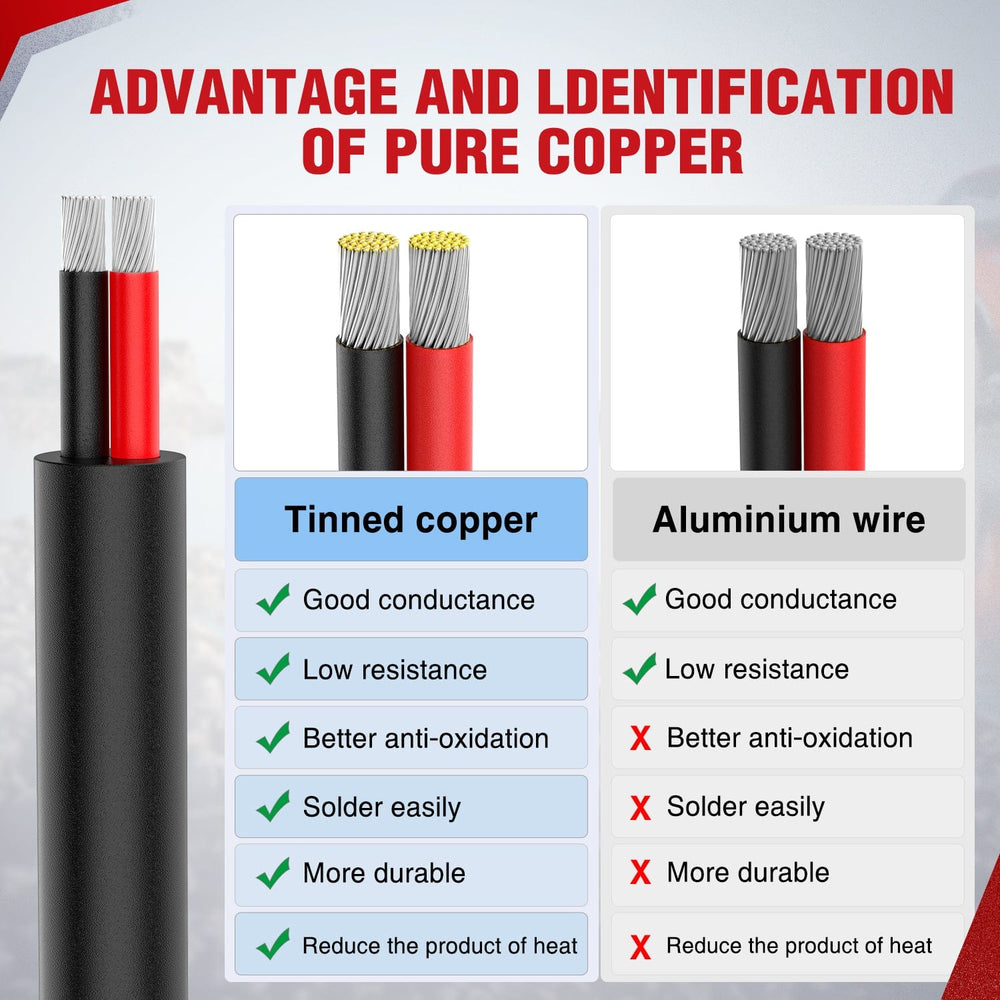 - Preminum Red & Black Wire: The wire adopts 16AWG 100FT high-quality red and black double wire, high-quality PVC sheath, with good electrical conductivity, high mechanical strength, flame retardant, anti-aging, acid and alkali resistance, moisture resistance and other characteristics. Operating temperature range of -40¡ãC-105¡ãC, can work under strict conditions.