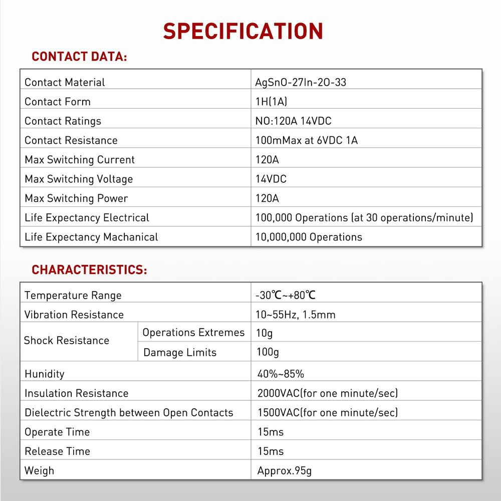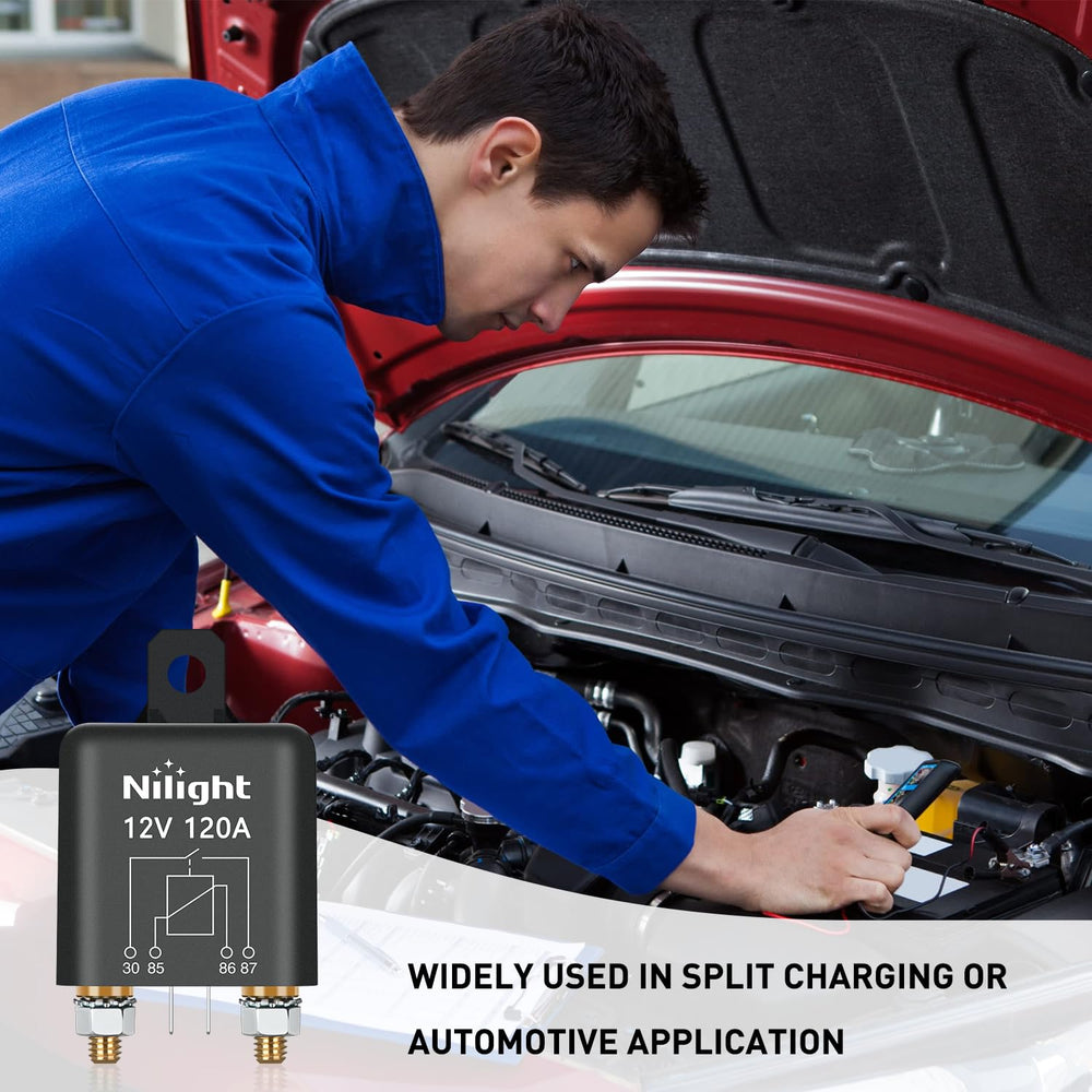 120A Starter Relay 4 Pin Split Relays Switch 12V Continuous Heavy Duty SPST High Current 4 Terminal Car Starter On Off Control for Automotive Car Truck RV Camper