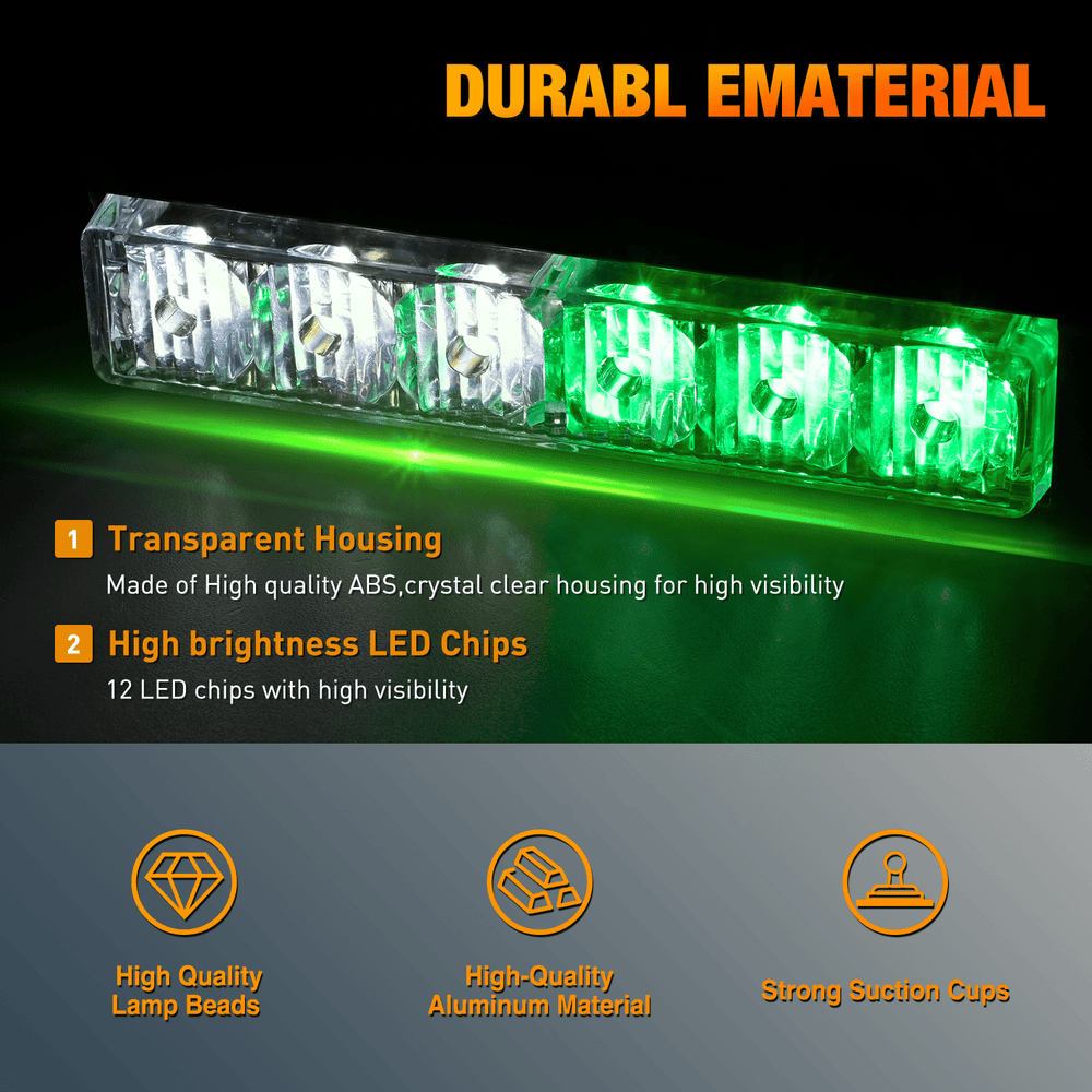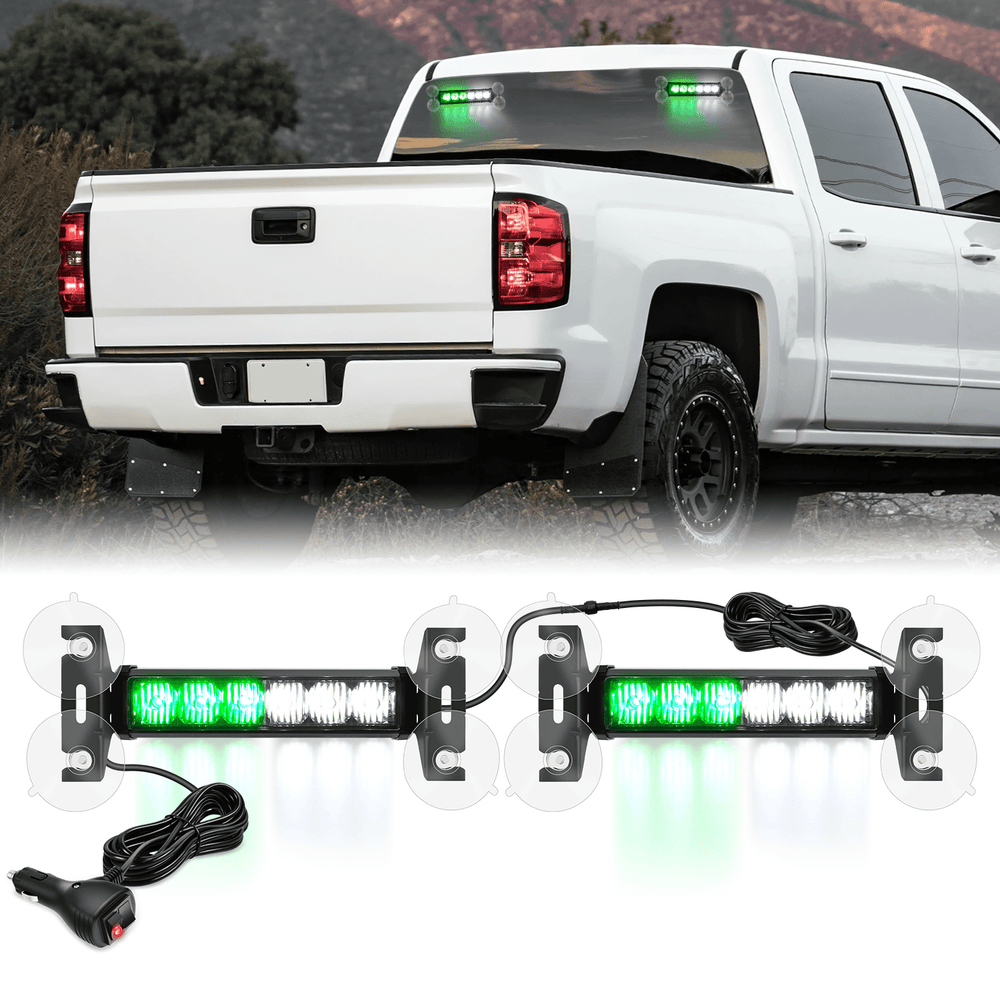 12LED Emergency Strobe Traffic Advisor Light Bar 2 in 1 Green White Dash Warning Safety Flashing Lights Front/Rear Windshield Construction Lights for Trucks Cars Plow Police Vehicles