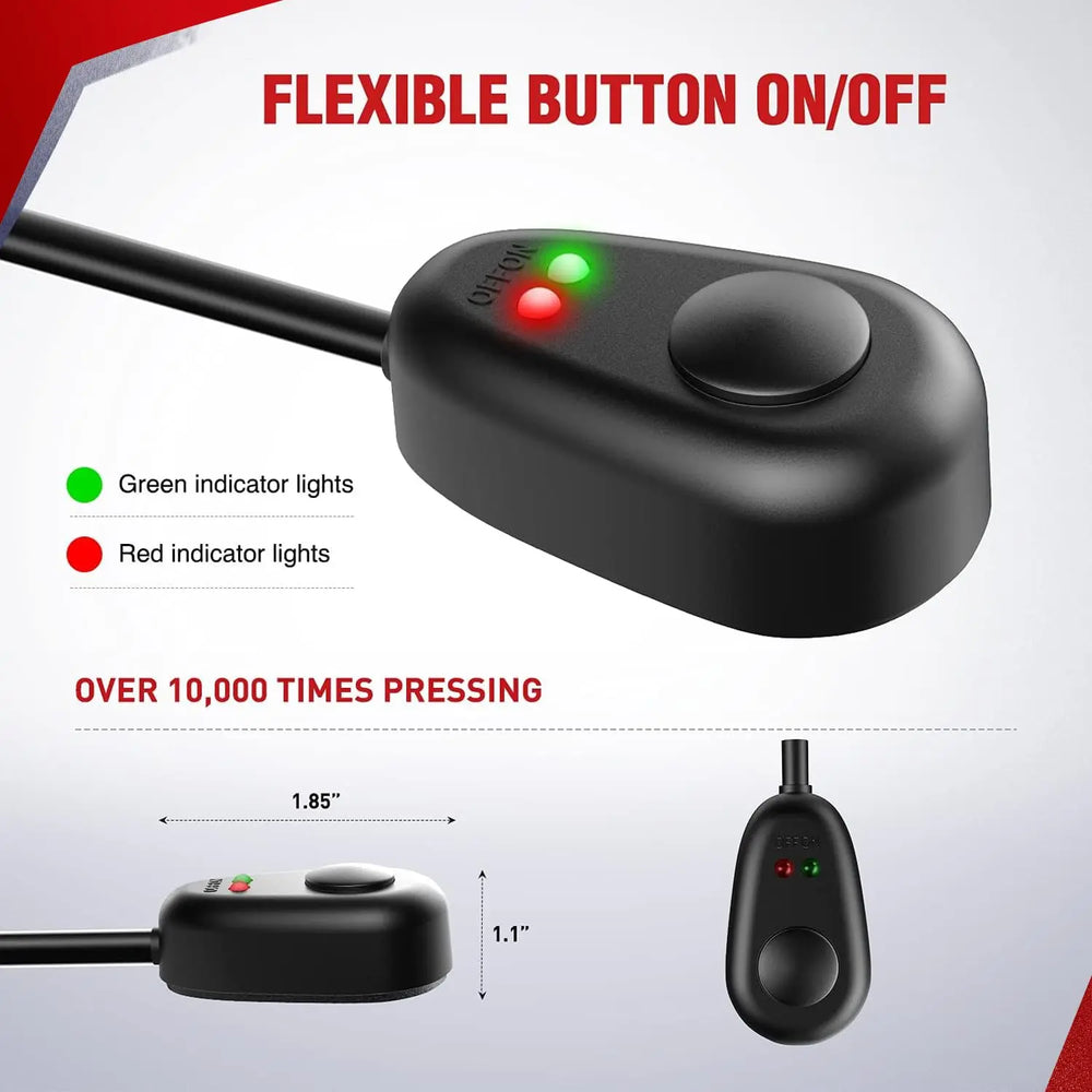 - Two Controllers: On/off rocker switch with red and green Indicator light when truing on, easy to turn on or off, long service life. It contains 4 modes of remote control, which can be remotely controlled. Modes include: on/off/fast flash/slow flash. You can adjust it according to your preference.