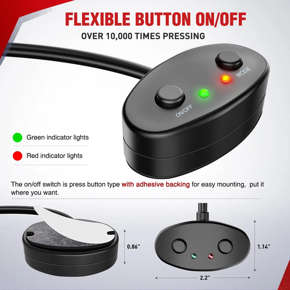 - Upgraded Version Wiring Harness: Regulate mode in turn by the mode button(white/amber/white & amber/white strobe/amber strobe/ white & amber strobe). The light bar will remember the mode you last used, you won't be annoyed by switch-mode frequently. And always keep sync and same lighting mode, you won't be bothered by the out of sync light mode