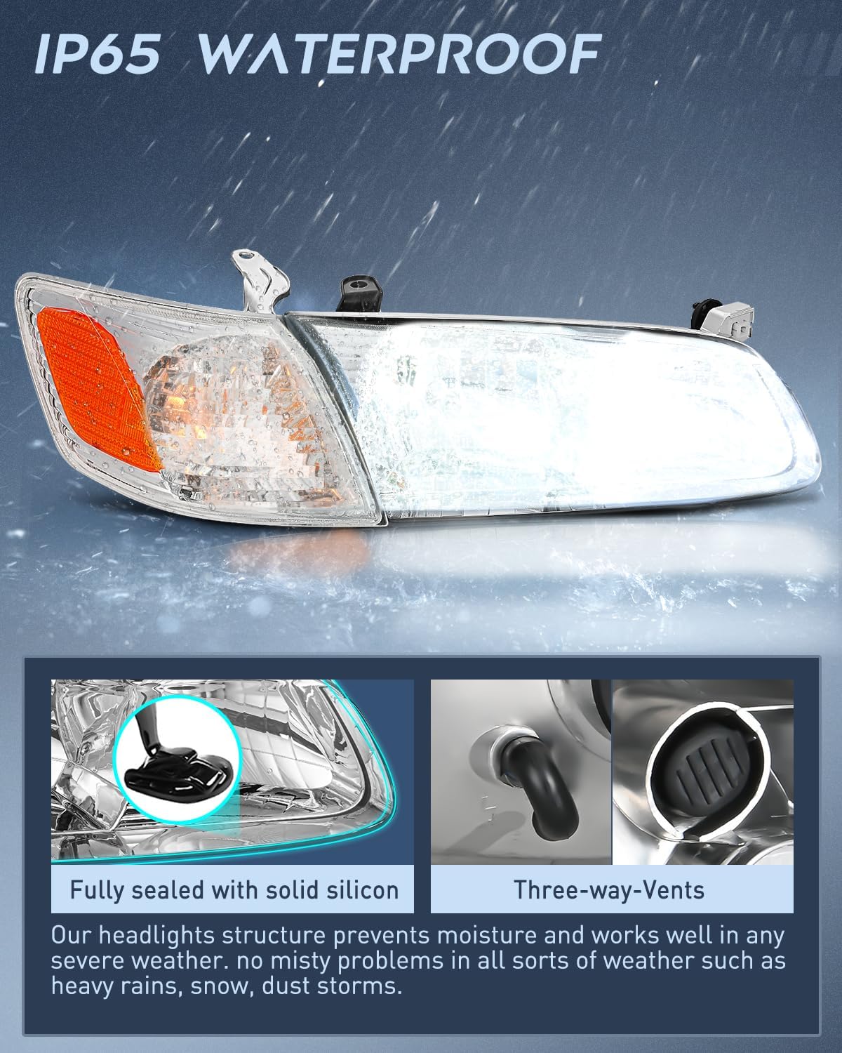 Compatibility: The headlights assemblies are compatible with 2000 2001 Toyota Camry; High beam bulb type: HB3; Low beam bulb type: HB4. Bulbs are not included, use stock bulbs for Installation.