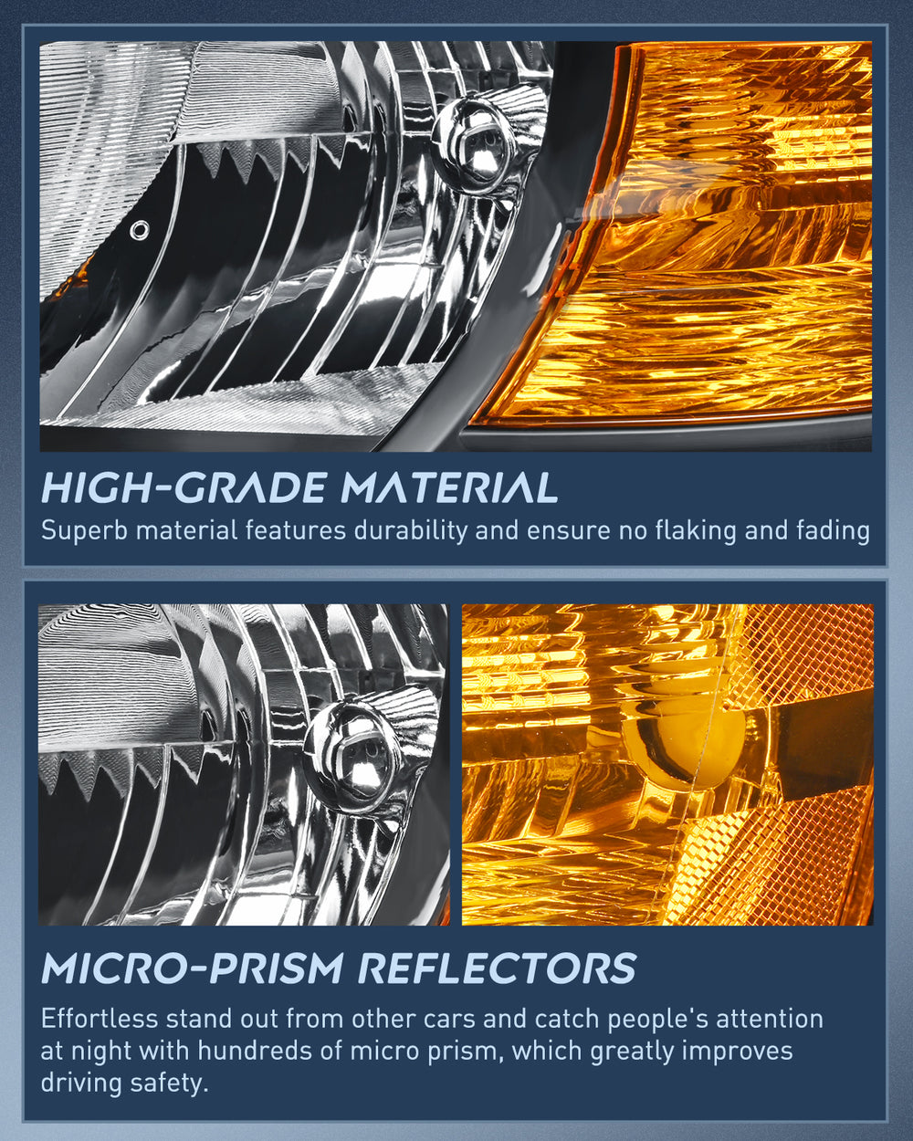 Super bright: The integrated metalized reflectors of this headlight assembly increase light distance for better visibility & driving safety