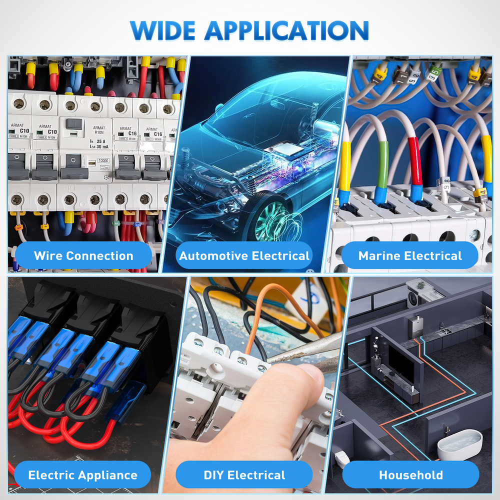 - Wide Application: Suitable for household, electronics, boat, vehicle, automobiles, motorcycles, stereos and auxiliary lighting installation projects. Protects against wire shorts by insulating wire ends, accepts solid and stranded wire combinations for single and multi-strand applications.