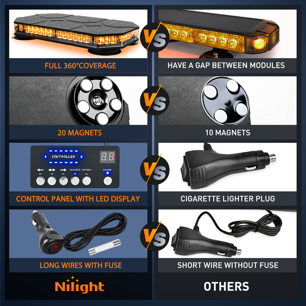 - Nilight rooftop strobe light has a total of 42 high-intensity Led chips. provided maximum illuminate coverage and be visible from greater distance.