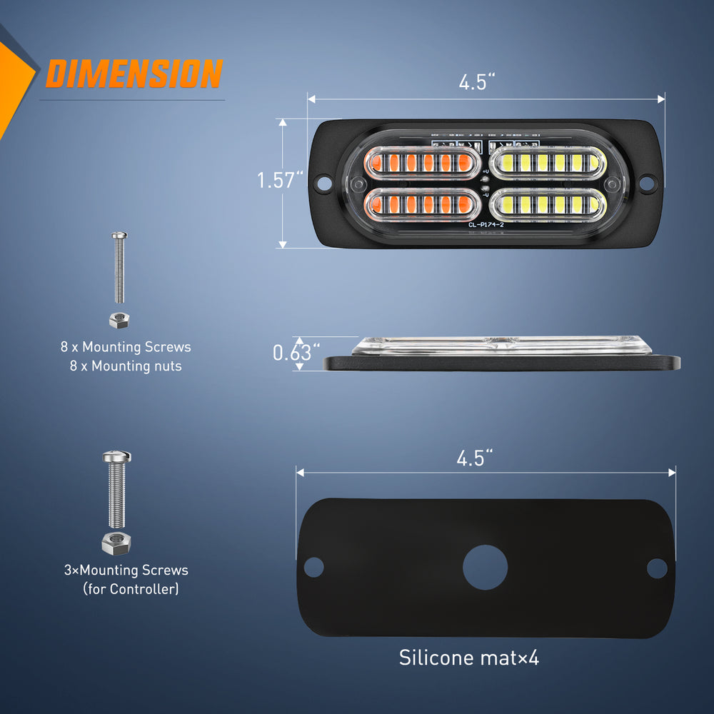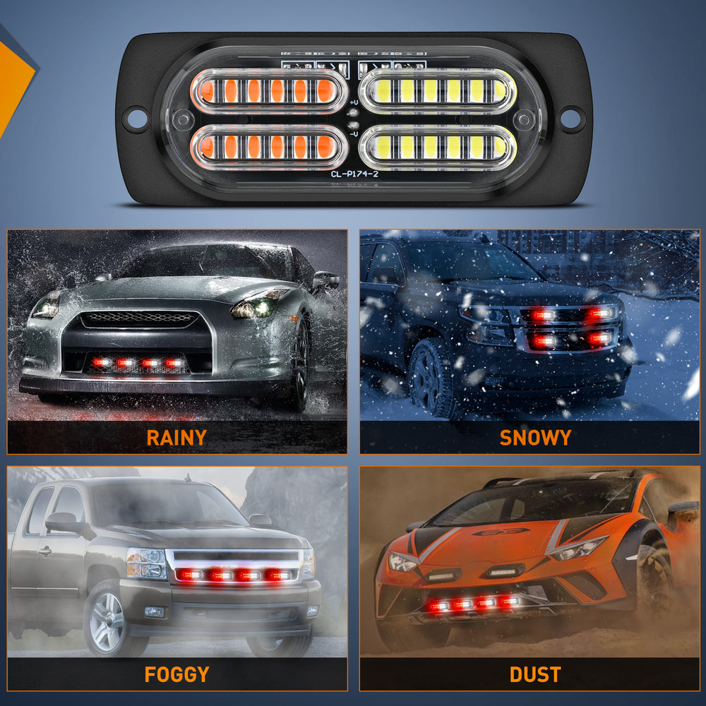 - Super Bright:4Pcs Surface Mount Red White Strobe Lights are consists of 4pcs double row 24 LED chips, provided maximum illuminate coverage and be visible from greater distance. Visible in daylight, midnight, rainy, foggy or snow days