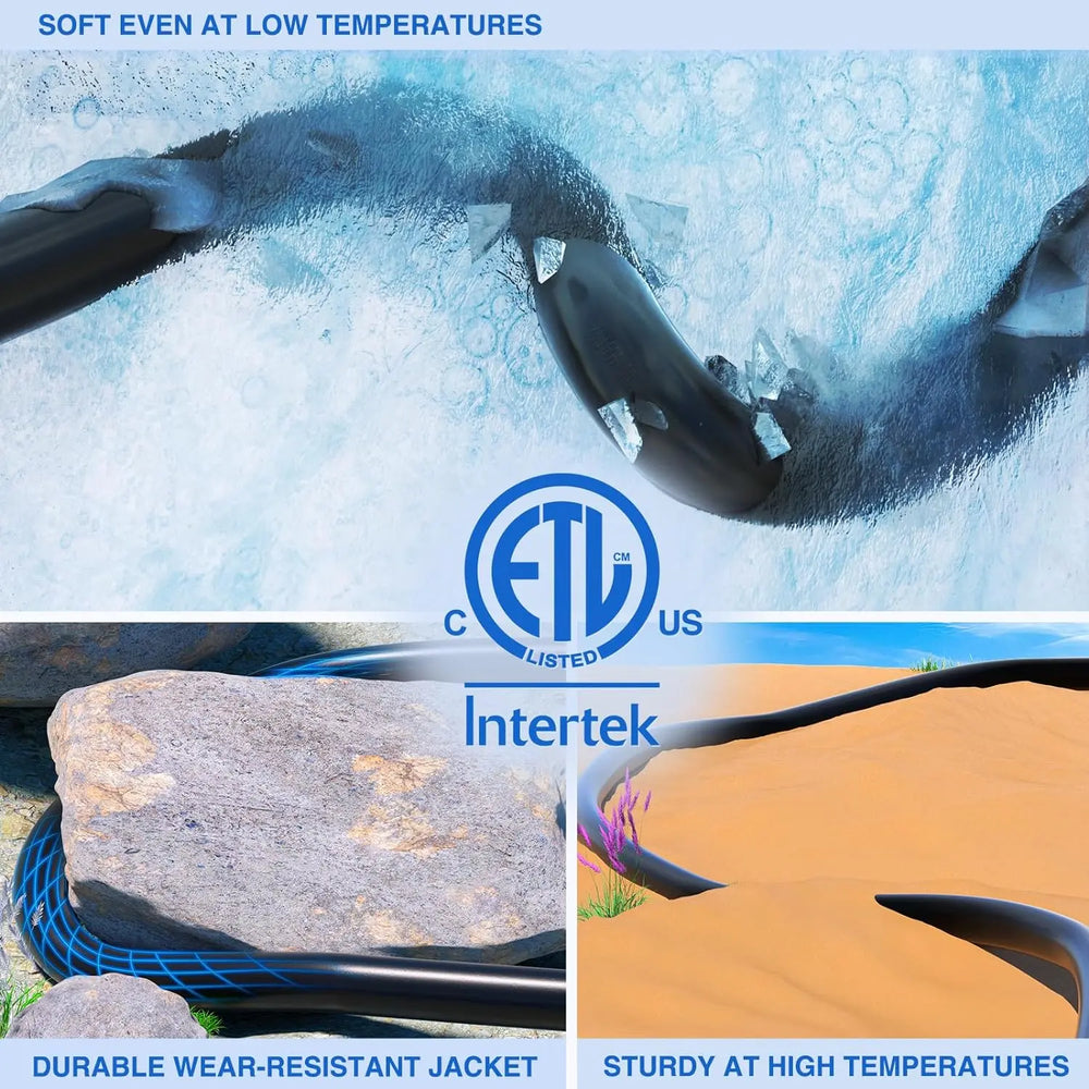 - Weather Resistance: Oxygen-free copper wire and industrial design ensure clean, consistent operation. The cord is coated with a heavy-duty flame retardant, heat-resilient PVC sheath that serves as protection from the outdoor elements. Protect the wire from wind, rain, snow, soil, and rocks for long-lasting durability. Weather resistant thermoplastic jacket that performs under extreme weather conditions(max work temperature: 60℃/140°F, low temperature: -40°C/-40°F).