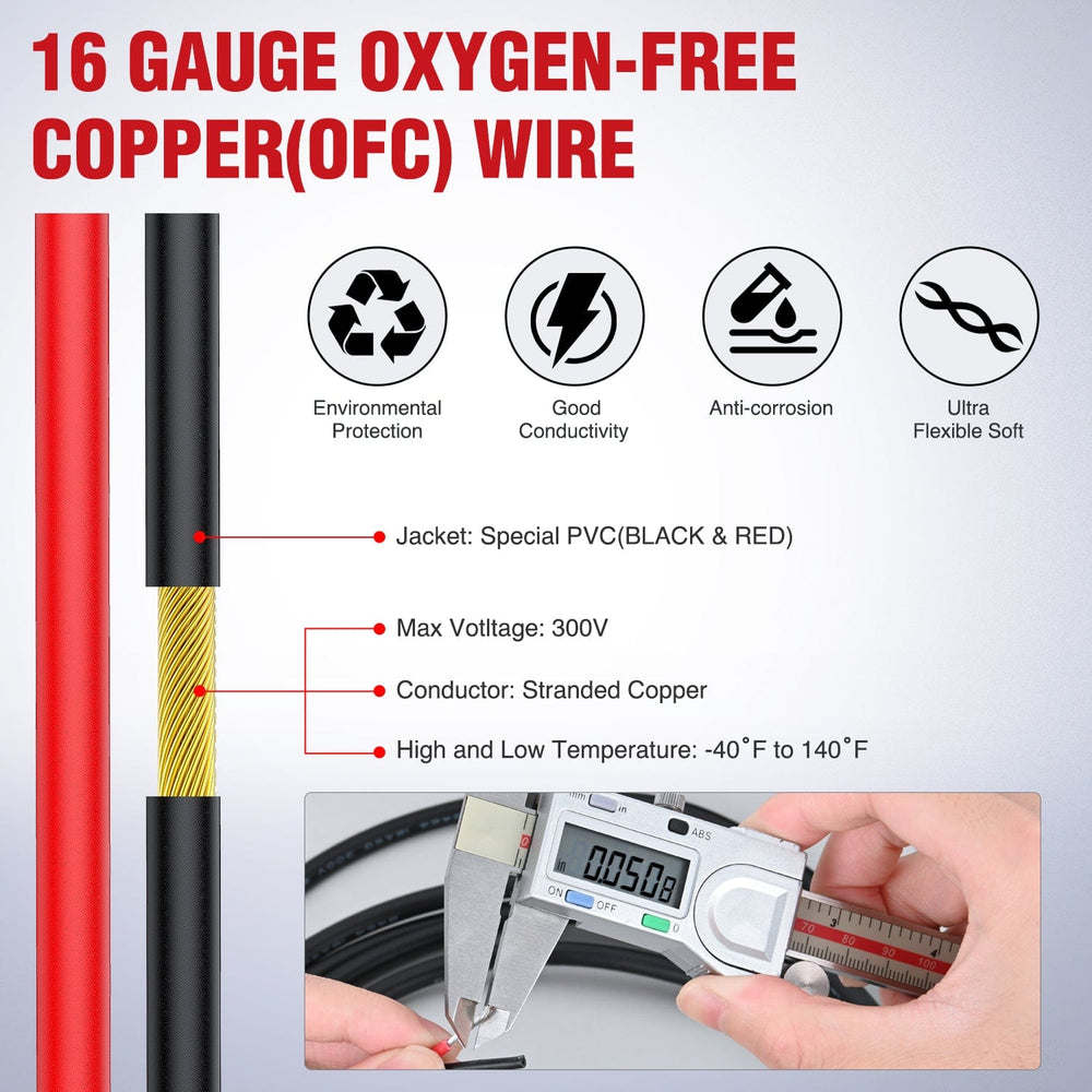 • Preminum Red & Black Wire: The wire adopts 18AWG 30FT high-quality red and black double wire, high-quality PVC sheath, with good electrical conductivity, high mechanical strength, flame retardant, anti-aging, acid and alkali resistance, moisture resistance and other characteristics. Operating temperature range of -40¡ãC-105¡ãC, can work under strict conditions.