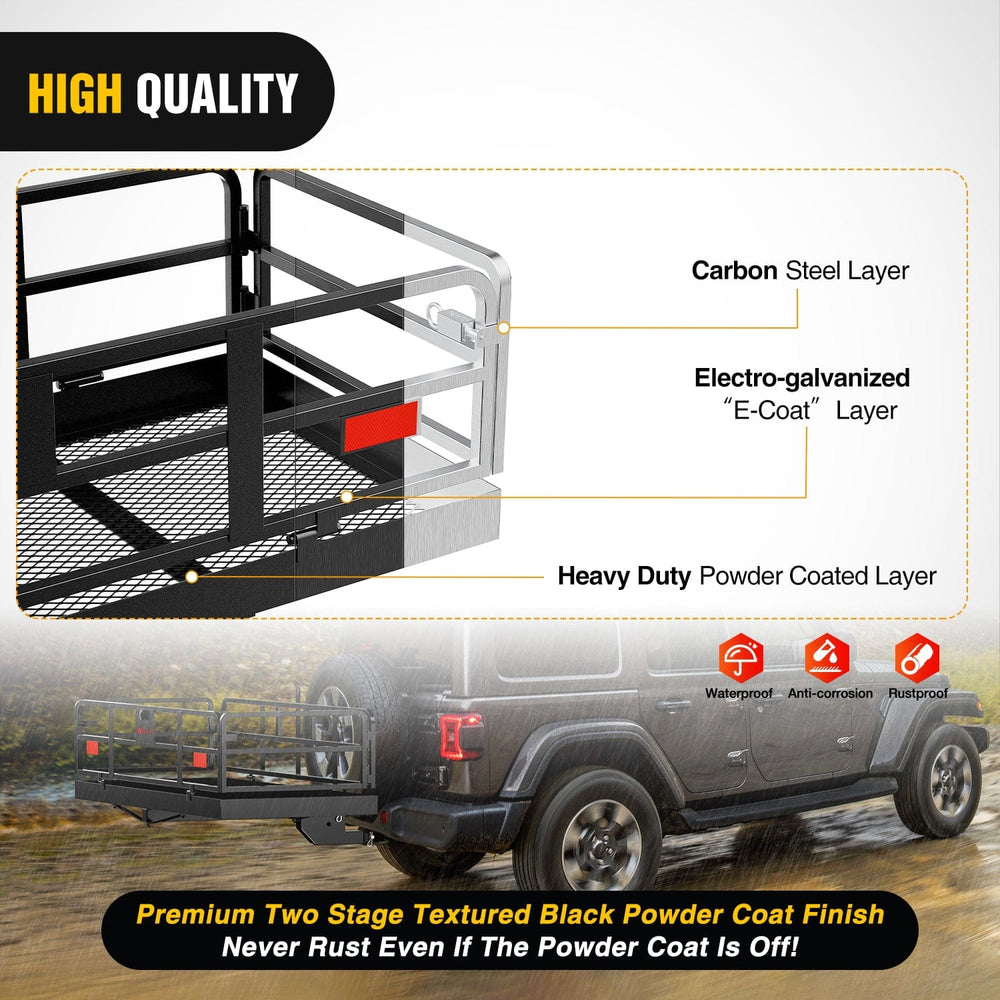- Rugged And Durable: Nilight Hitch Cargo Carrier made of heavy-duty steel has extra strength and durability, with black epoxy powder coating to protect against rust, road grime, and other elements.