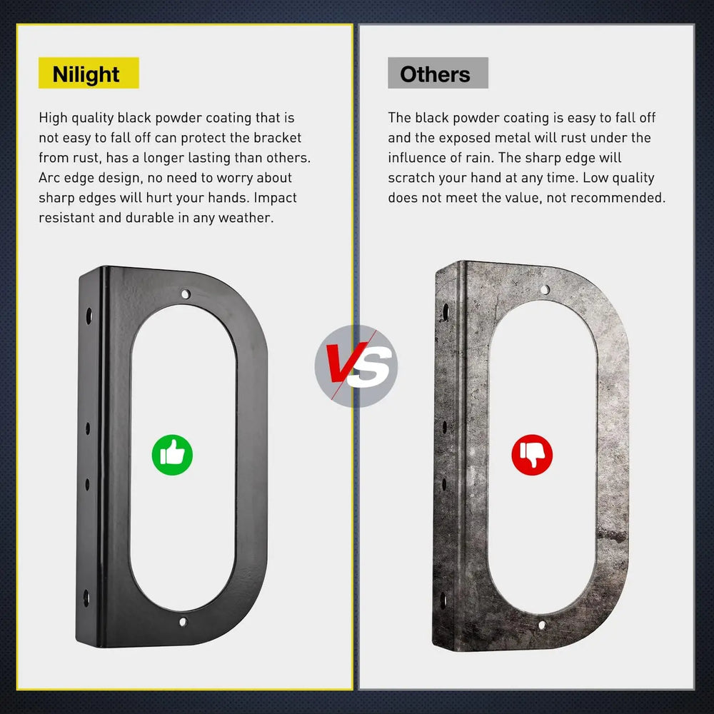 - Upgraded Unique Design: Nilight's tail light has unique “ears” on its two sides, upgrade notches on the inside of grommet, and a tighter attaching ability between 3-prong plug and it. These help the light and grommet fit perfectly and firmly on mounting bracket, and the 3-prong plug attaches tightly on the light. Shake proof, there will be no worries of loosing light or wires