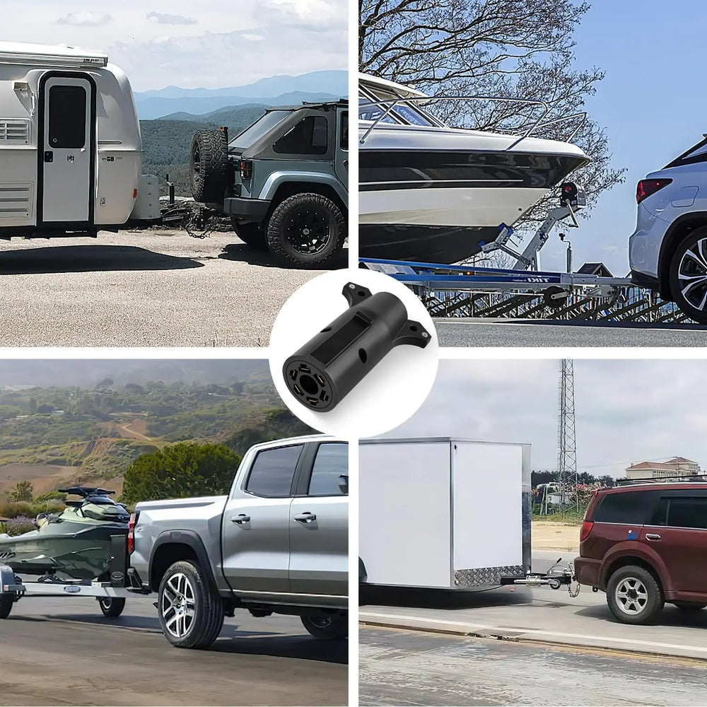 - Easy Installation & disassembly: Simple plug-and-play, install or removal our trailer adapter with no tools. Lock the adapter into your 7-WAY BLADE socket, then plug in your 6-WAY ROUND trailer.