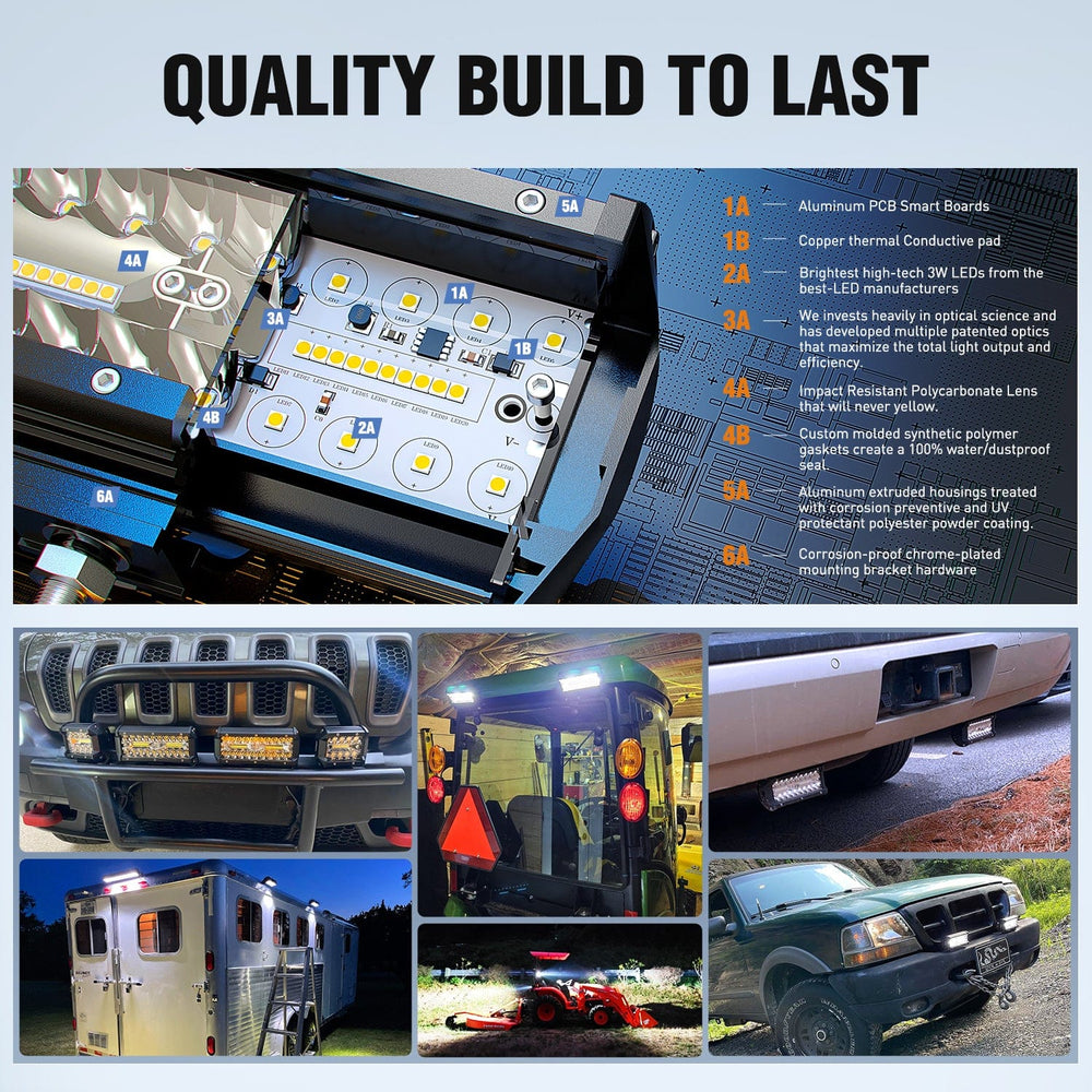 - Package Include:4PCS 6.5 Inch Triple Rows LED Light Bar