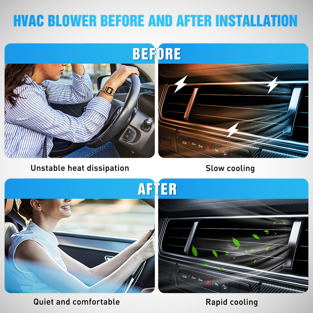 - Excellent Airflow: The precision-engineered design maximizes airflow output, rapidly adjusting your vehicle's interior temperature to your desired comfort level. Whether you need instant warmth in winter or refreshing coolness in summer, our blower fan delivers efficiently and effectively.