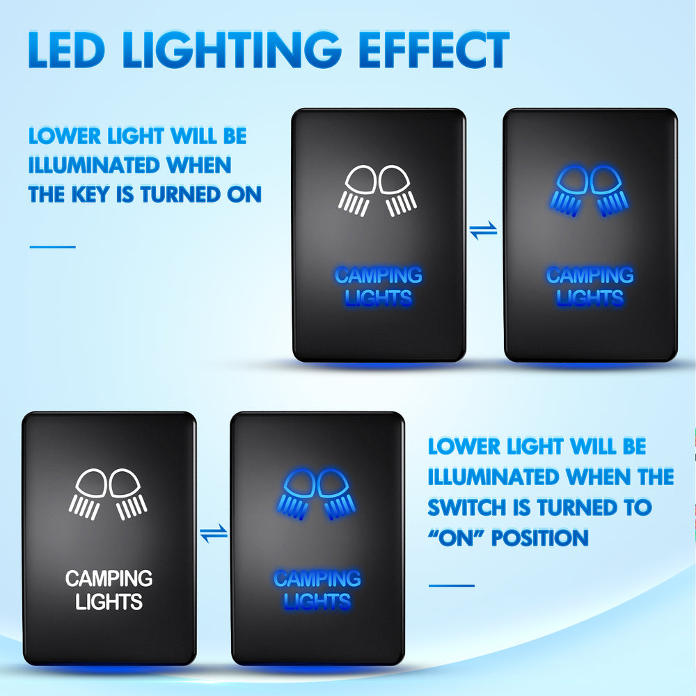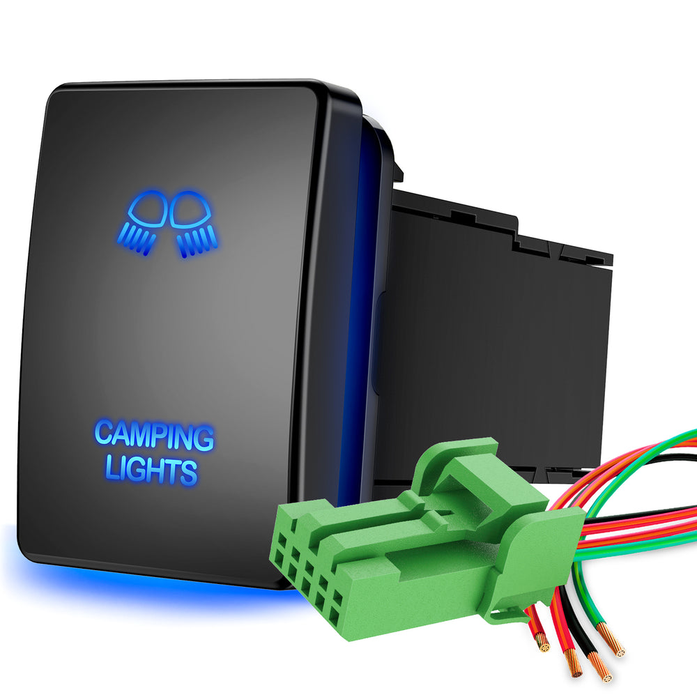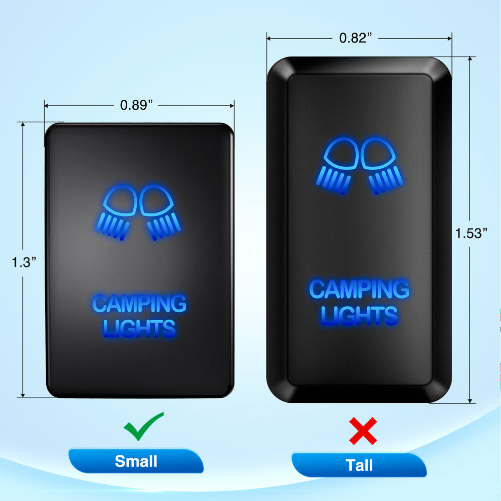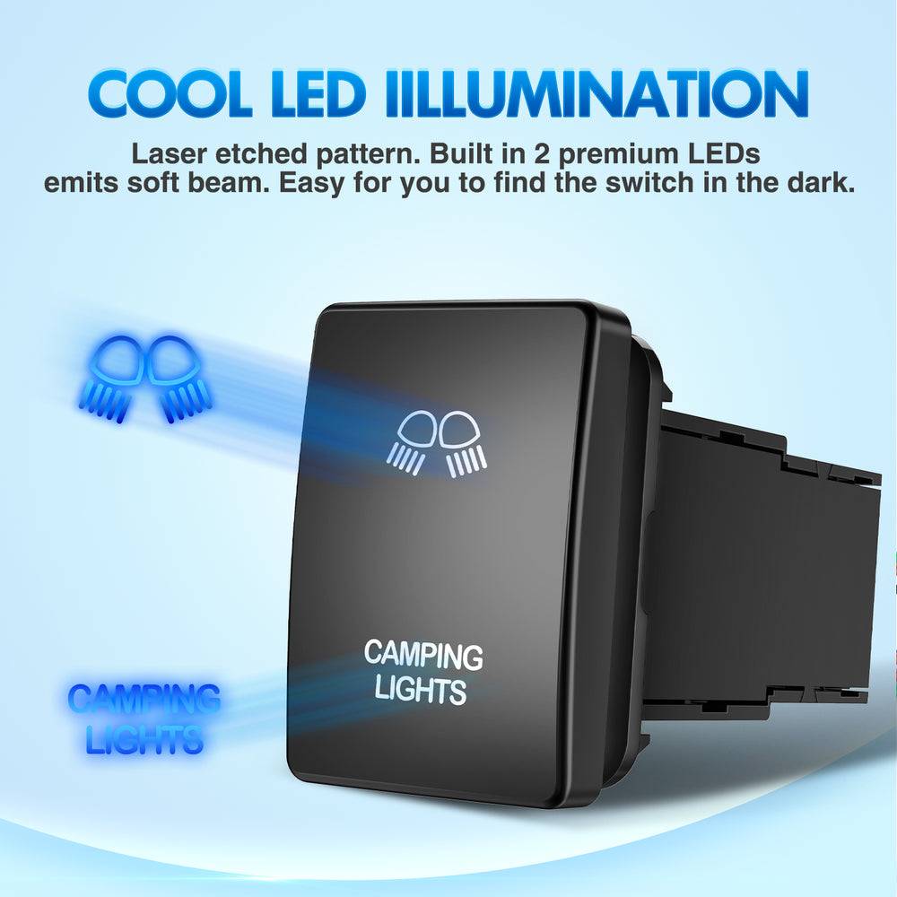 Camping Lights Push Button Switch 12V ON Off Switches with Connector Wire Kit 1.28Inch x 0.87Inch Replacement for Toyota Sequoia Highlander Tacoma Tundra 4Runner RAVR Yaris