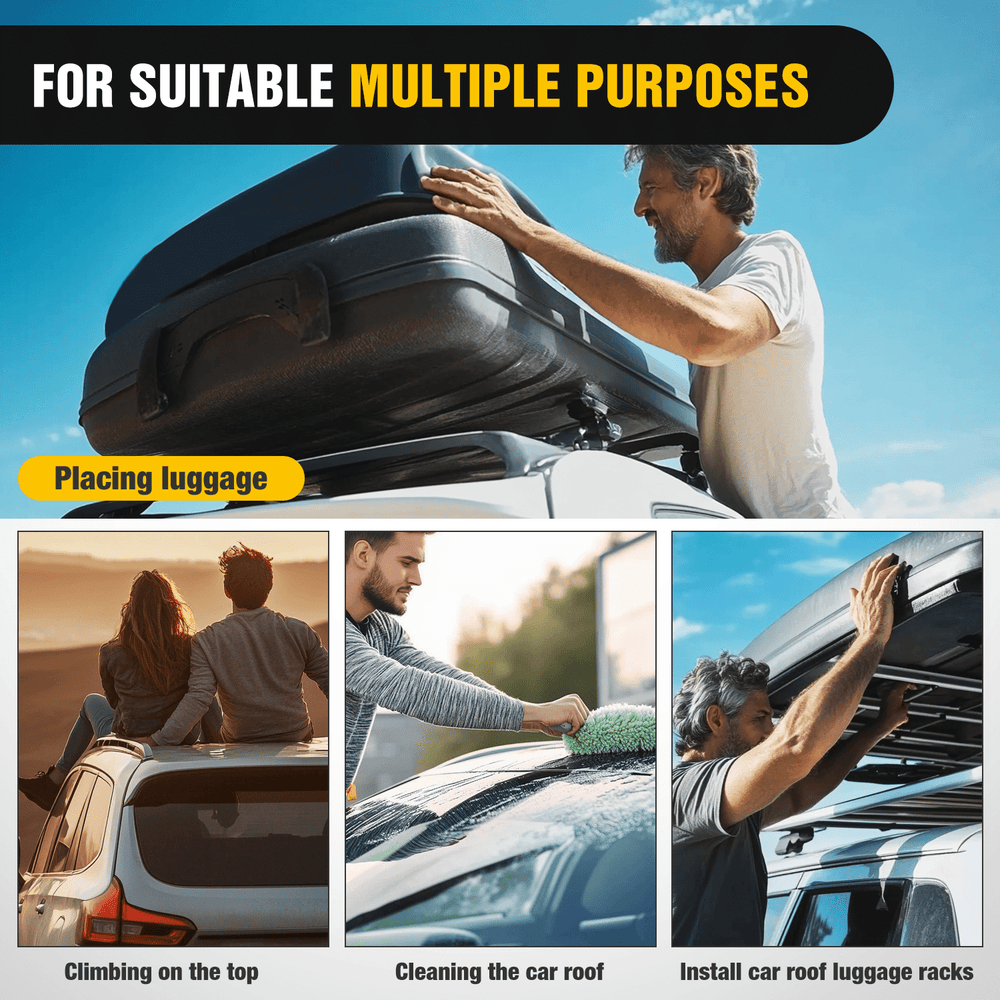 - Easy To Install: Simply open any of your car or truck doors, hook the car step hook for roof onto the door latch and adjust the angles to fit the door for easy roof access in a few simple steps. It makes loading and unloading your roof rack, roof boxes, kayaks, canoes, skis, snowboards, bikes, and SUPs faster and easier and even washing your vehicle roof