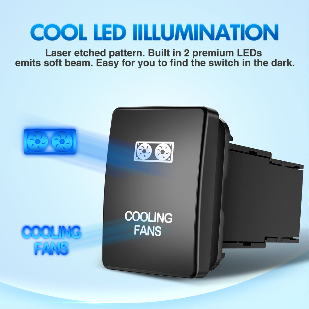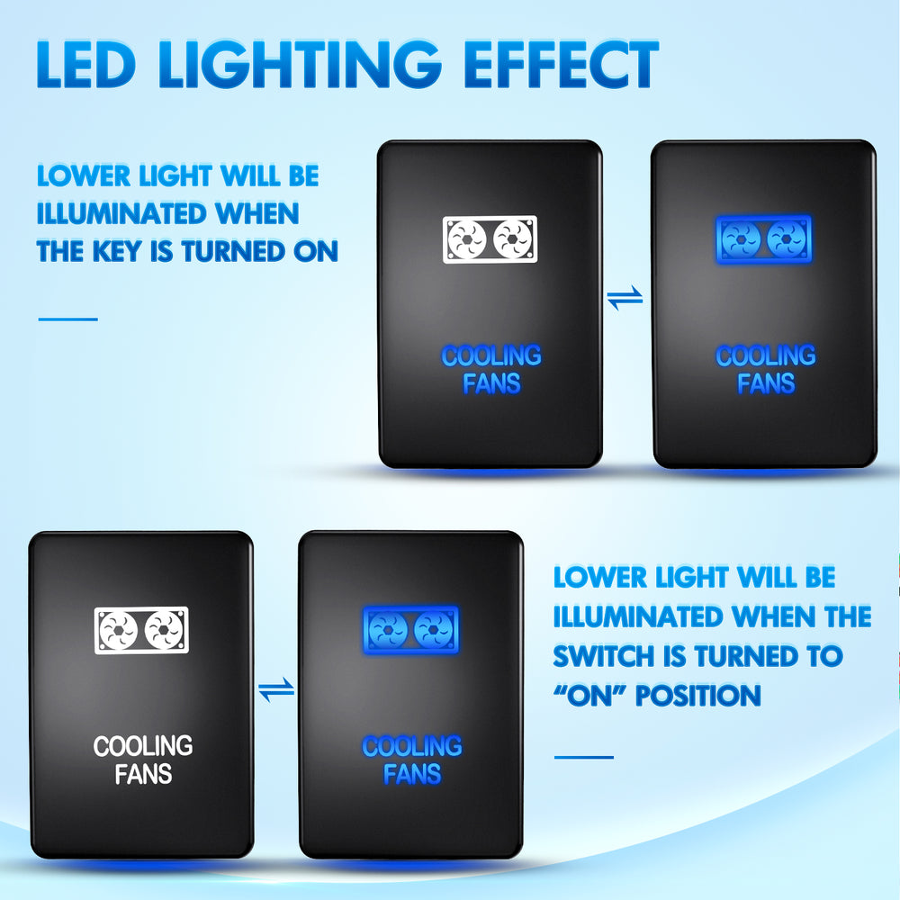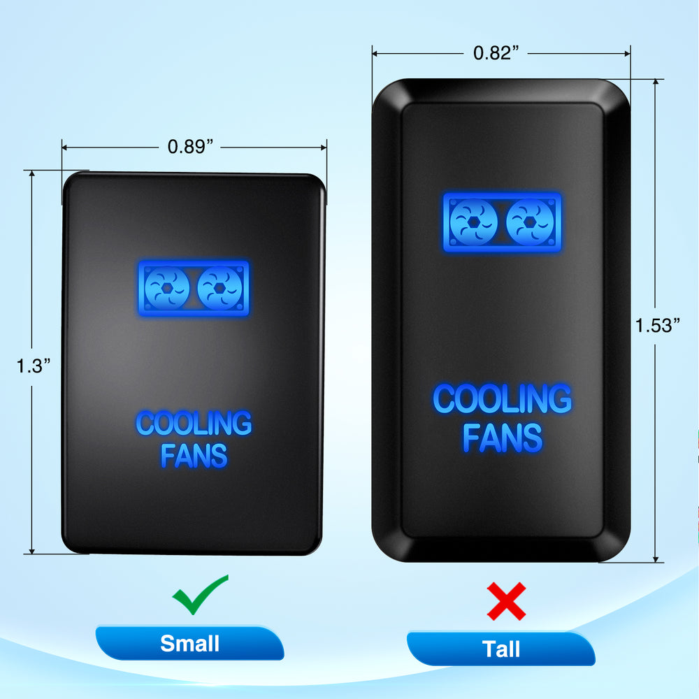 Cooling Fans Push Button Switch 12V ON Off Switches with Connector Wire Kit 1.28Inch x 0.87Inch Replacement for Toyota Sequoia Highlander Tacoma Tundra 4Runner RAVR Yaris