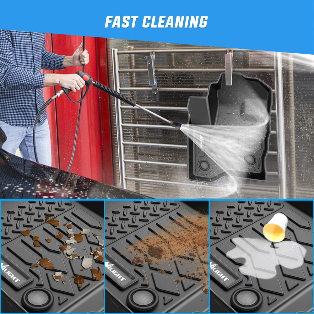 Needless the cumbersome vacuum cleaner or harsh chemicals, Simply shake them out or spray them down with a hose.