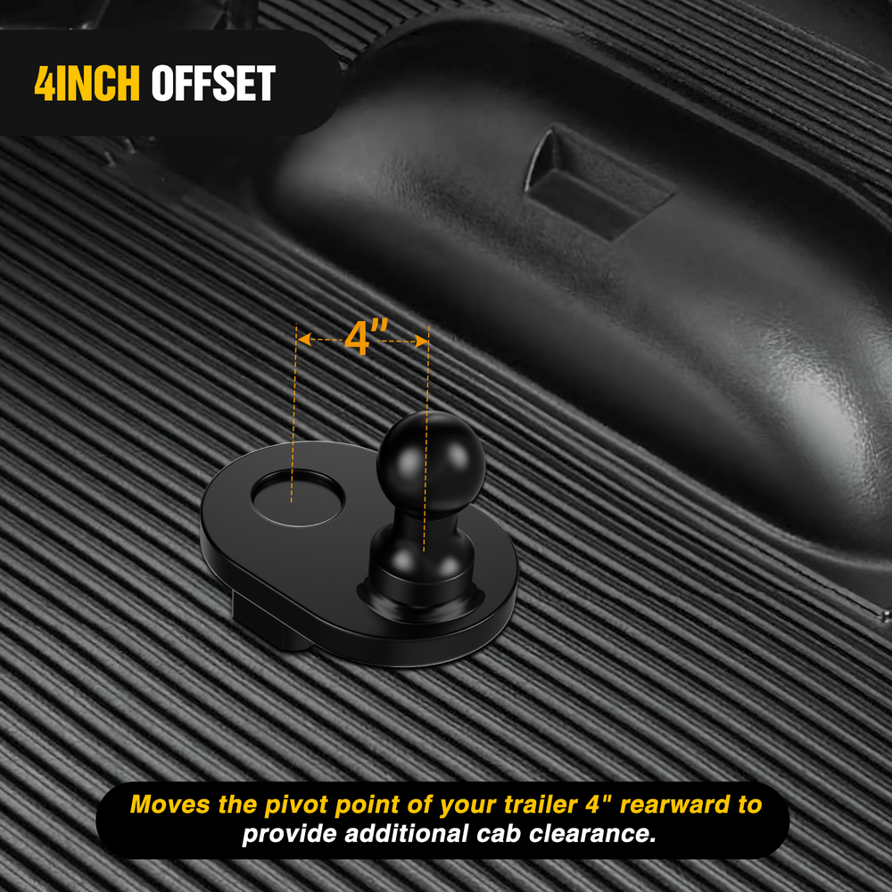 - 4 Inch Offset: This ball extender moves the pivot point of your trailer 4inch rearward to provide additional cab clearance. Meanwhile, it can greatly improve visibility when making sharp turns to avoid collisions.