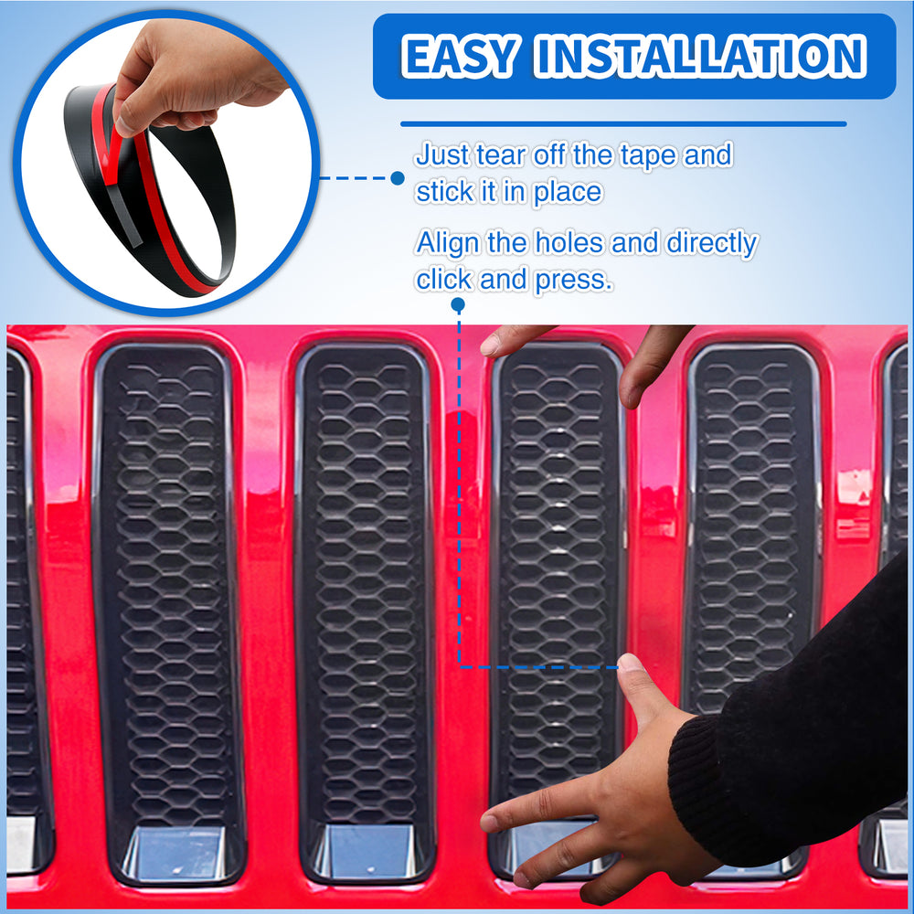 The grille mesh inserts and cover trim are made of high-strength upgraded ABS material, which can withstand impact, UV rays and extreme weather for long service life.