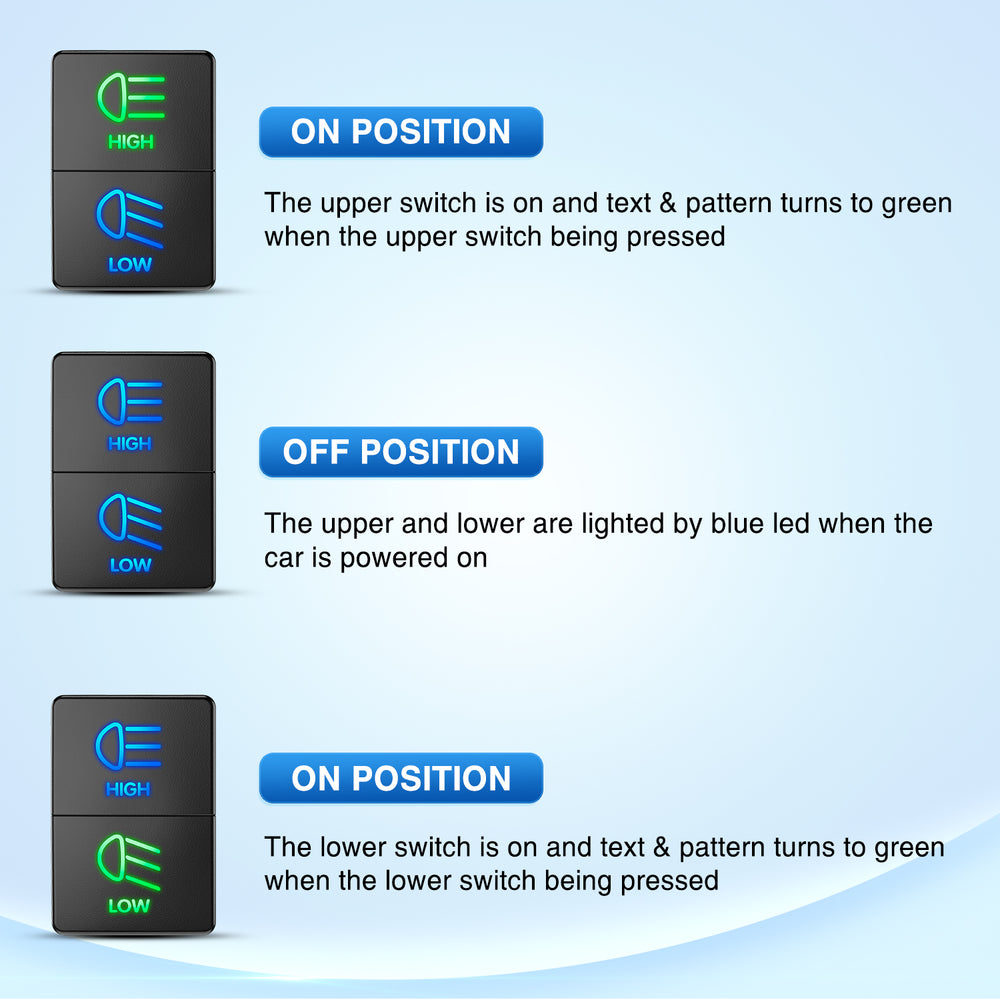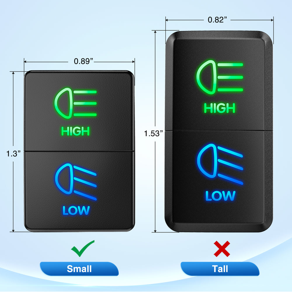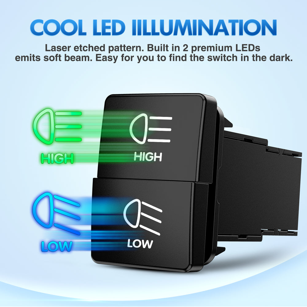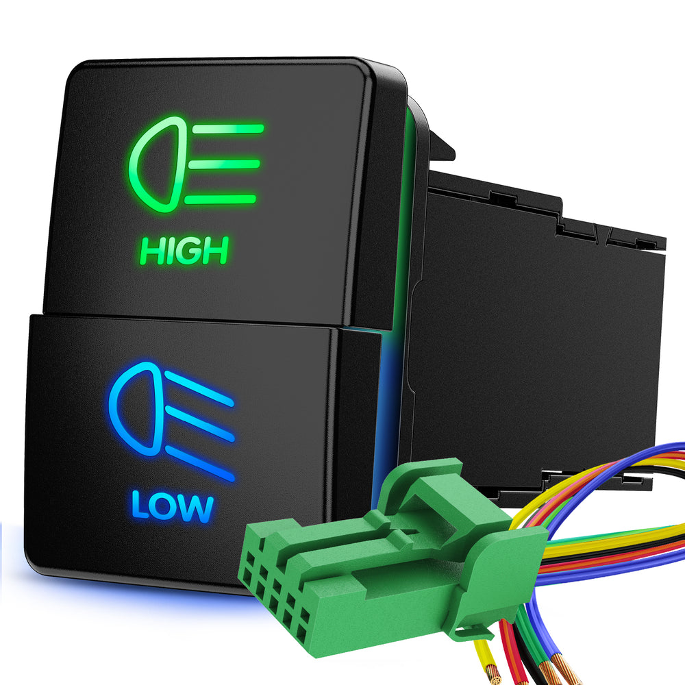 High Beam & Low Beam Dual Push Button Switch 12V ON Off Switches with Connector Wire Kit 1.28Inch x 0.87Inch Replacement for Toyota Sequoia Highlander Tacoma Tundra 4Runner RAVR Yaris
